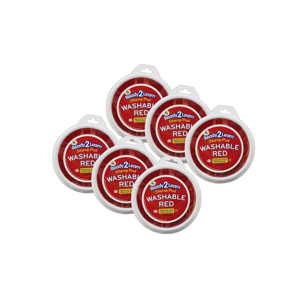 Stamp and create with this red Jumbo Circular Washable Stamp Pad! Made of non-toxic ink, this stamp pad is safe for ages 3+. The ink is acid-free and fade resistant for archival quality, which makes you can store your little artist's creations forever! An open-ended tool to decorate scrapbooks, notebooks or cards, this stamp pad inspires creative expression and imagination. As children stamp, they will develop fine motor skills and hand-eye coordination. This stamp pad features a huge 5.75" diameter for handprints and baby footprints. The ink comes clean with soap and water. Size of ink pad surface area: 5.75" dia. Sold as a pack of 6 stamp pads.