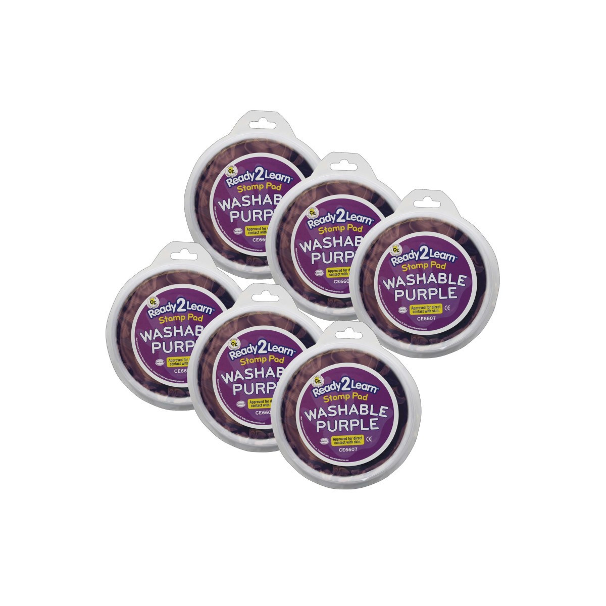 Stamp and create with this purple Jumbo Circular Washable Stamp Pad! Made of non-toxic ink, this stamp pad is safe for ages 3+. The ink is acid-free and fade resistant for archival quality, which makes you can store your little artist's creations forever! An open-ended tool to decorate scrapbooks, notebooks or cards, this stamp pad inspires creative expression and imagination. As children stamp, they will develop fine motor skills and hand-eye coordination. This stamp pad features a huge 5.75" diameter for handprints and baby footprints. The ink comes clean with soap and water. Size of ink pad surface area: 5.75" dia. Sold as a pack of 6 stamp pads.
