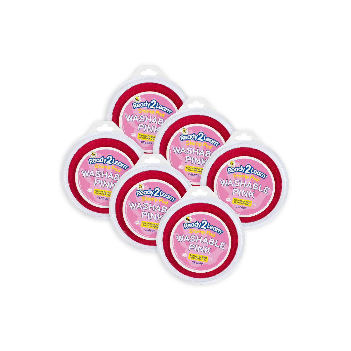 Stamp and create with this pink Jumbo Circular Washable Stamp Pad! Made of non-toxic ink, this stamp pad is safe for ages 3+. The ink is acid-free and fade resistant for archival quality, which makes you can store your little artist's creations forever! An open-ended tool to decorate scrapbooks, notebooks or cards, this stamp pad inspires creative expression and imagination. As children stamp, they will develop fine motor skills and hand-eye coordination. This stamp pad features a huge 5.75" diameter for handprints and baby footprints. The ink comes clean with soap and water. Size of ink pad surface area: 5.75" dia. Sold as a pack of 6 stamp pads.