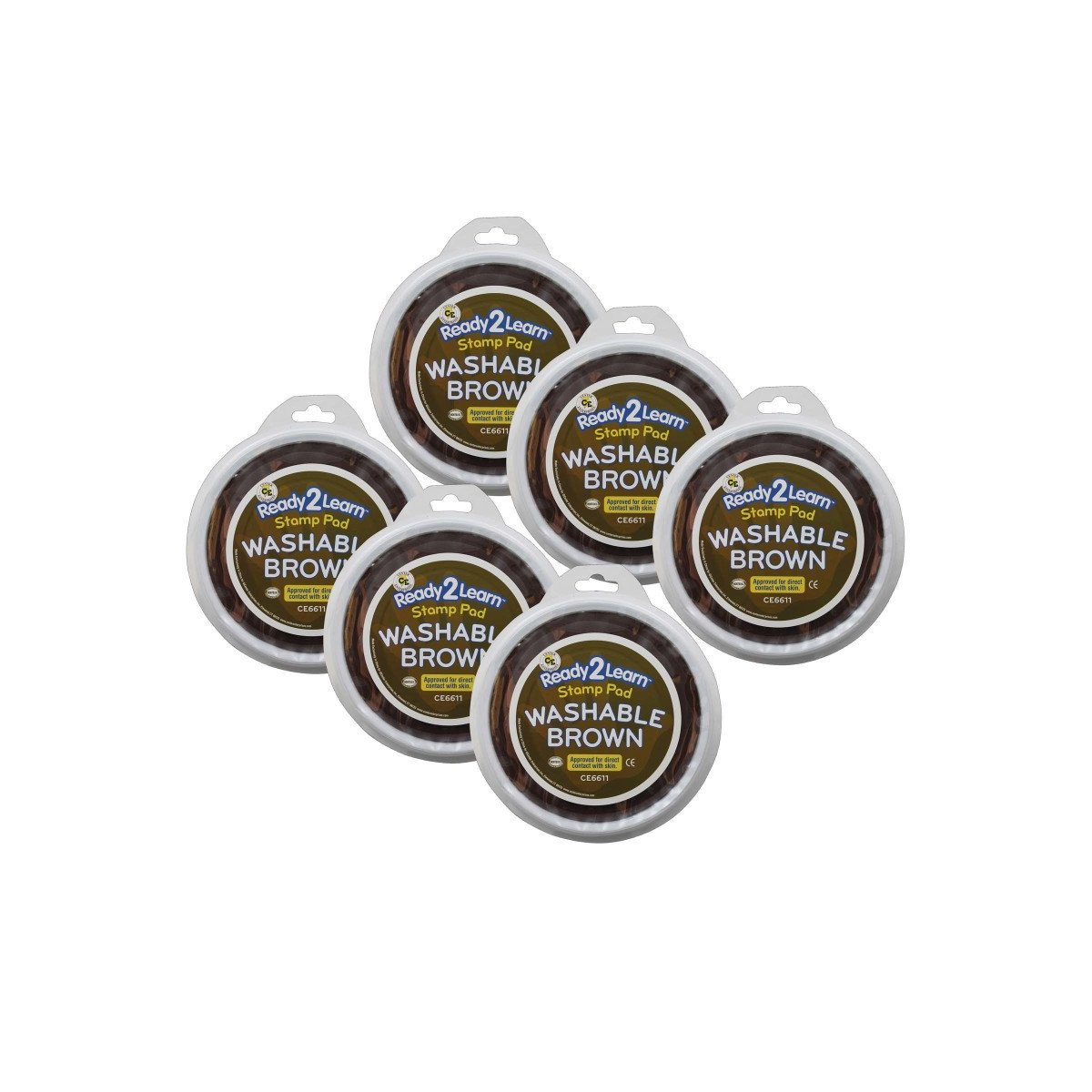 Stamp and create with this brown Jumbo Circular Washable Stamp Pad! Made of non-toxic ink, this stamp pad is safe for ages 3+. The ink is acid-free and fade resistant for archival quality, which makes you can store your little artist's creations forever! An open-ended tool to decorate scrapbooks, notebooks or cards, this stamp pad inspires creative expression and imagination. As children stamp, they will develop fine motor skills and hand-eye coordination. This stamp pad features a huge 5.75" diameter for handprints and baby footprints. The ink comes clean with soap and water. Size of ink pad surface area: 5.75" dia. Sold as a pack of 6 stamp pads.