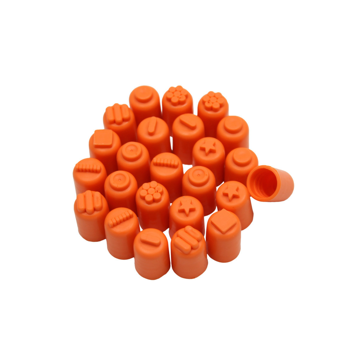 - 8 DIFFERENT PATTERNS -- This set includes 24 stamps which slip on fingertips like thimbles. The set features 3 each of 8 designs: square, circle, ring, star, polka dots, line, dotted line and stripes.