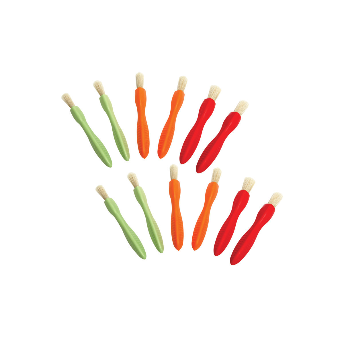 6 EASY-TO-GRIP BRUSHES IN 3 SIZES -- Sold as 2 sets, each set includes 6 paint brushes with triangular-shaped handles in 3 widths: 0.9"W, 0.75"W and 0.6"W.