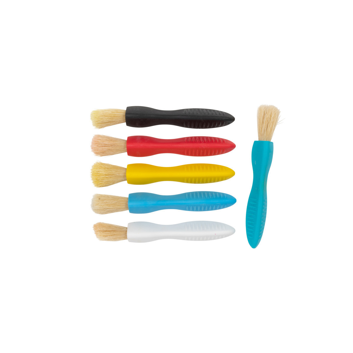 Paint fantastic creations and promote tripod grip with Triangle Grip Paint Brushes. This set includes 6 paint brushes with triangular-shaped handles. Ideal for those with special needs, Triangle Grip Paint Brushes rest comfortably in small hands for greater artistic control. The triangle shape also promotes proper writing grip. Made of durable rubber with natural hog hair bristles, these paint brushes will last for many painting sessions! As children paint, they develop imagination, creative expression, hand-eye coordination and fine motor skills. The brushes come clean with warm soap and water, which makes them an ideal classroom accessory! Colors may vary. For ages 18m+. Size: 6.25"L x 0.9"W.