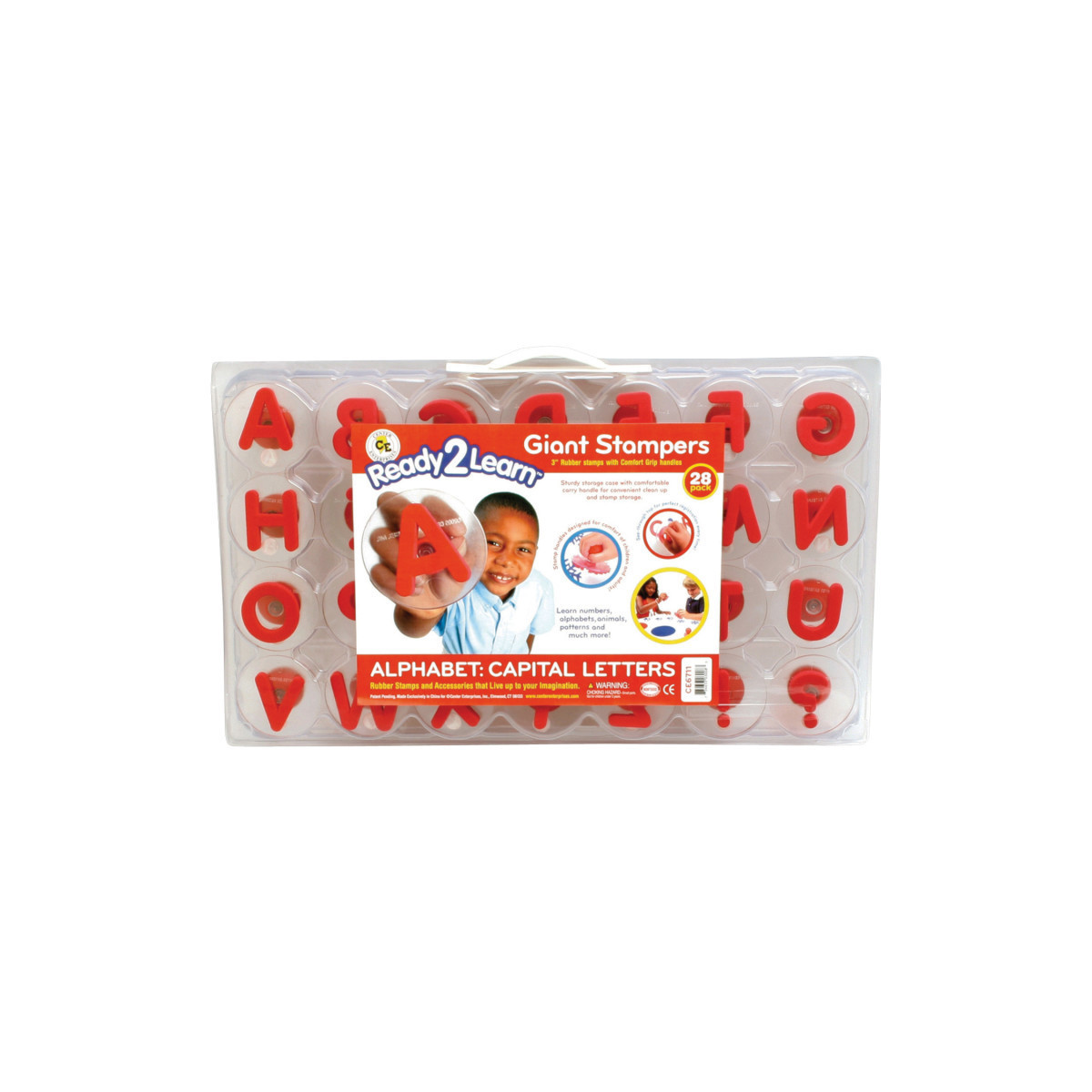 INCLUDES 28 LITERARY STAMPS -- Let's learn the alphabet! This set includes 28 giant stampers with foam shapes of uppercase letters A-Z, Ñ and question mark.