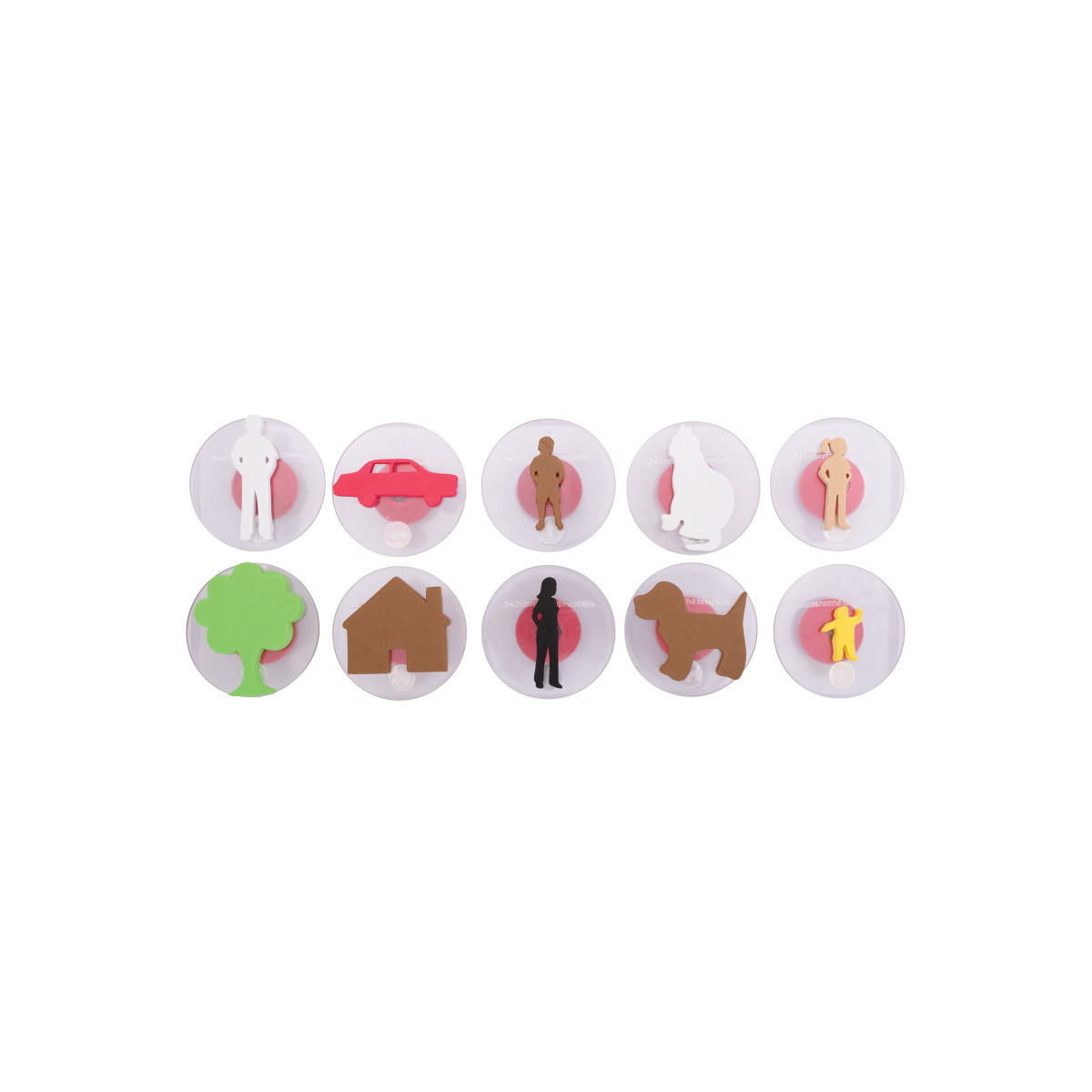 - 10 DIFFERENT FAMILY MEMBERS -- Let's explore family life! This set includes 10 giant stampers with foam shapes of a father, mother, brother, sister, baby, house, cat, dog, car and tree.