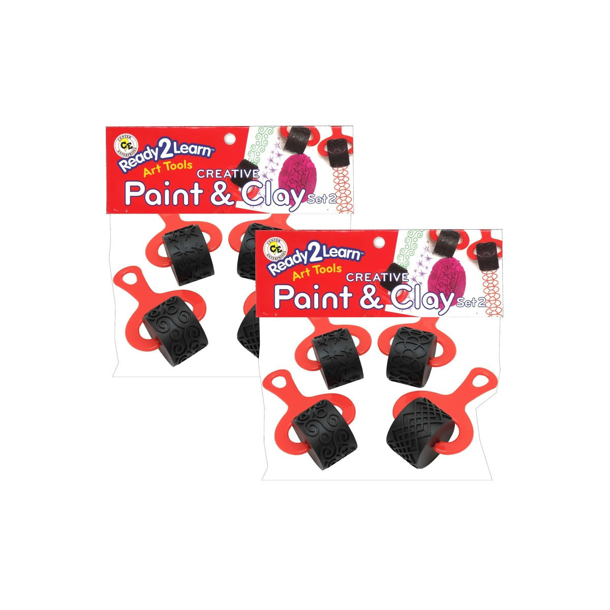 Create patterns and textures with Paint and Clay Explorers! Each set includes 4 dough rollers, each with a different pattern: stars, hoops, swirls and diamonds. These chunky, durable clay rollers fit easily in small hands. Use these pattern rollers to create decorations, posters, pottery and more! As children craft, they develop imagination, creative expression, hand-eye coordination and fine motor skills. The rollers can be cleaned with warm soap and running water, which makes them an ideal home or classroom accessory! For ages 3+. Size: 6"L x 3.3"W. Roller size: 1.6"W. Each set includes 4 rollers. Sold as 2 sets for a total of 8 rollers.