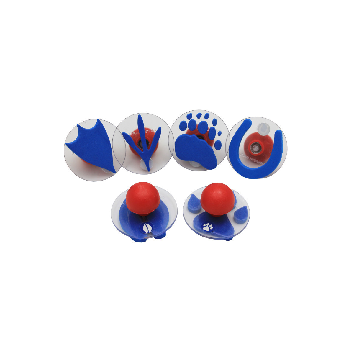 Create animal paths and decorate DIY projects with these Giant Paw Print Stampers! This 6-piece set includes 6 different paw print-themed stamps: cat, bird, bear, horse, duck and deer. Each stamp features a large foam shape mounted on a 3" disc for stability. The chunky, rounded handles provide greater comfort and control. Ideal for DIY projects and art and craft time, these giant stampers assist in developing fine motor skills and creativity. Size: 1.9"H x 3" dia.