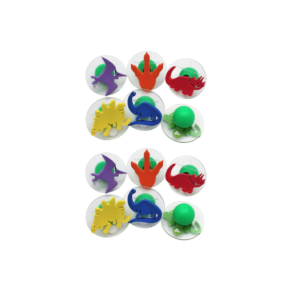 Create jurassic scenes and decorate DIY projects with these Giant Dinosaur Stampers! Each 6-piece set includes 6 different dino-themed stamps: dimetrodon, brontosaurus, triceratops, stegosaurus, pterodactyl and a dinosaur footprint. Each stamp features a large foam shape mounted on a 3" disc for stability. The chunky, rounded handles provide greater comfort and control. Ideal for DIY projects and art and craft time, these giant stampers assist in developing fine motor skills and creativity. Size: 1.9"H x 3" dia. Each pack includes 6 stamps. Sold as 2 packs for 12 stamps total.