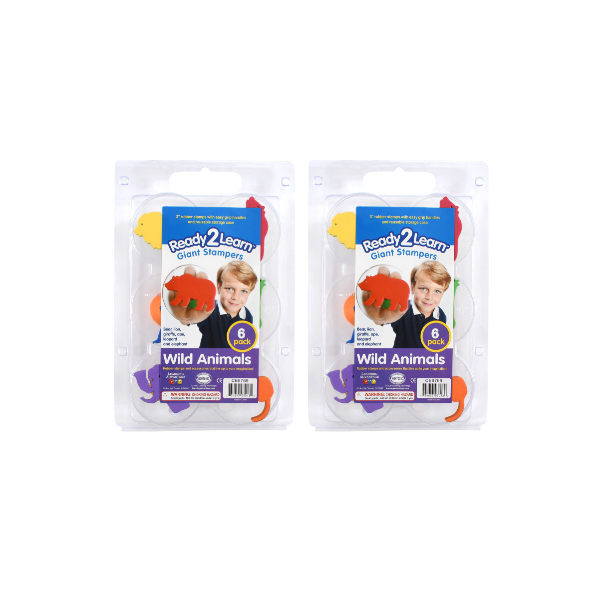 Create safari scenes and decorate DIY projects with these Giant Wild Animal Stampers! Each set includes 6 different animal-themed stamps: bear, lion, giraffe, ape, leopard and elephant. Each stamp features a large foam shape mounted on a 3" disc for stability. The chunky, rounded handles provide greater comfort and control. Ideal for DIY projects and art and craft time, these giant stampers assist in developing fine motor skills and creativity. Size: 1.9"H x 3" dia. Sold as 2 sets for a total of 12 stampers.