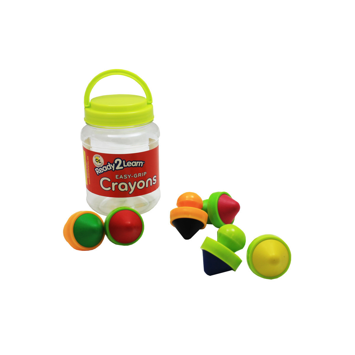 - EASY TO TAKE ANYWHERE -- Easy Grip Crayons are packaged in a plastic jar with a handle for easy cleanup, storage and travel.