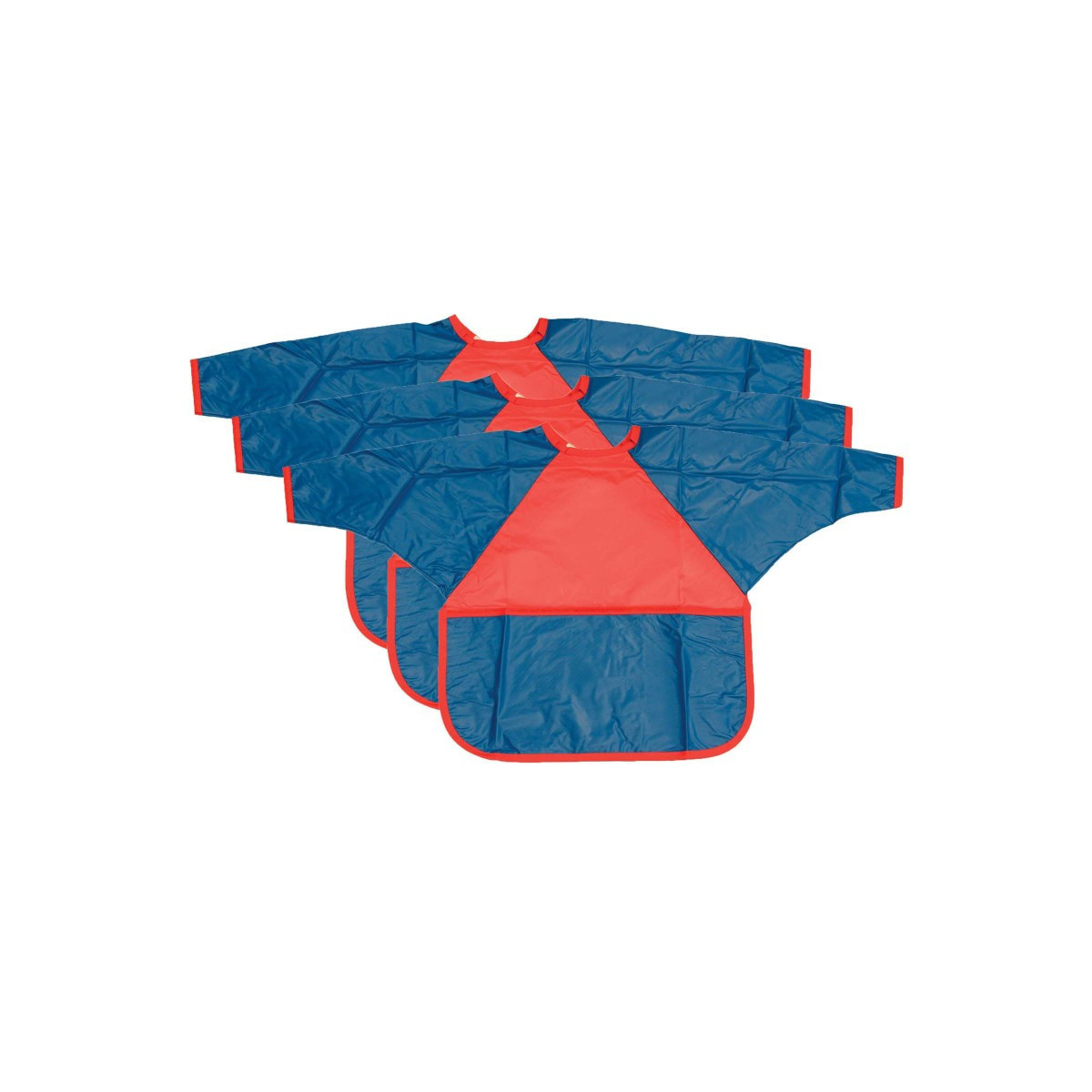 Our easy clean soft 6 mil non-toxic fire-retardant vinyl smocks have hook and loop fastener closures. Long sleeves provide extra cover up during messy play. Wide, deep pocket for easy storage of essentials. Sold as a pack of 3 smocks.
