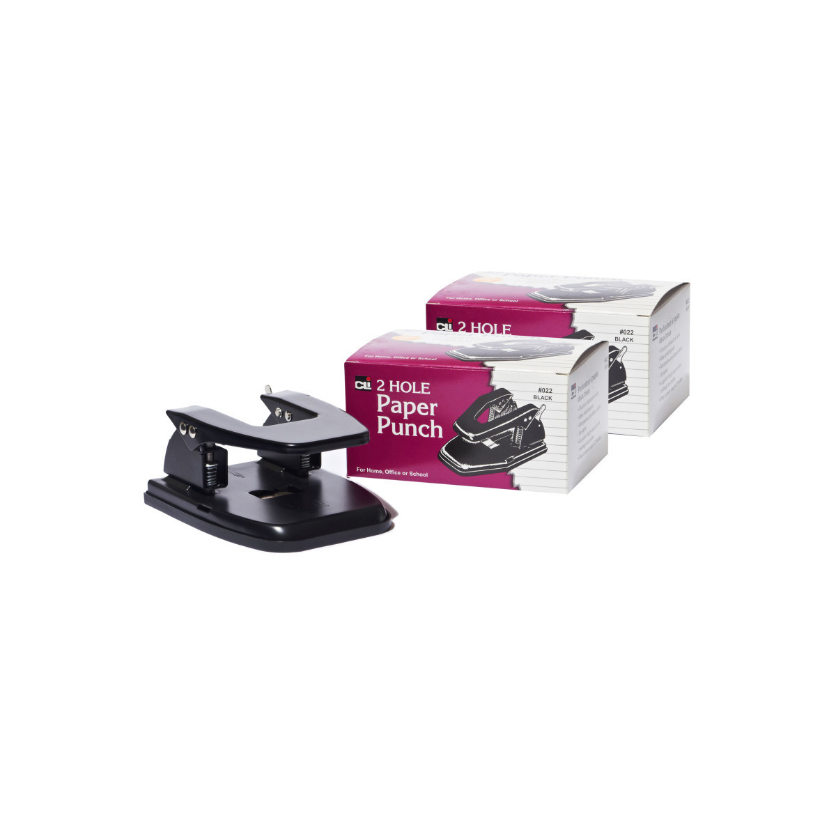 Two-hole model features black enamel finish, non-skid bases, removable chip traps and accurate built-in centering guides. Punches 30 sheets, 2-3/4" Center. Sold as a pack of 2 punches.