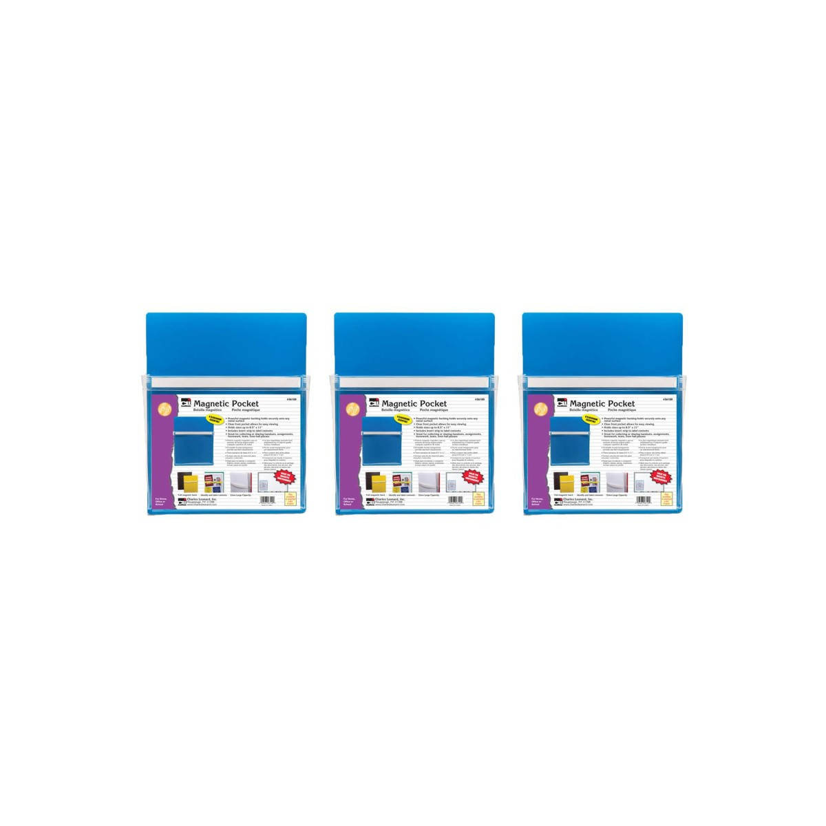 These magnetic pockets are so versatile and strong that it's almost impossible to name all the ways they can be used! Each pocket measures 9-1/2" wide and 11-3/4" high and features a powerful magnetic surface throughout the entire back of the pocket. The magnetic backing will hold securely onto any metal surface. The pockets also feature a large clear pocket in the front which can hold up to 2 lbs. worth of material! The front pocket also has an insert strip to label contents. Sold as a pack of 3 magnetic pockets.