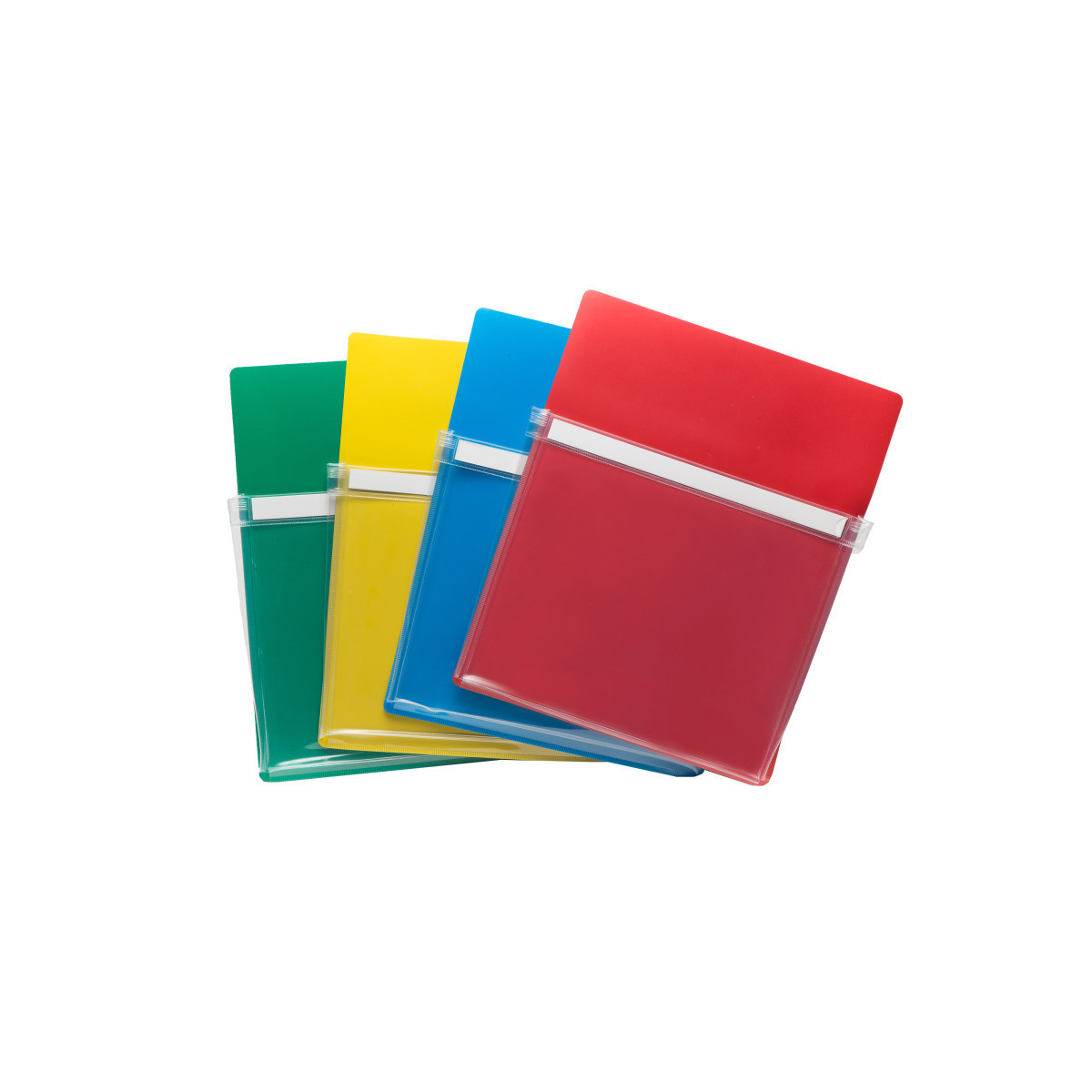 The front pocket also has an insert strip to label contents; pack of 4 pockets (red, blue, green and Yellow)