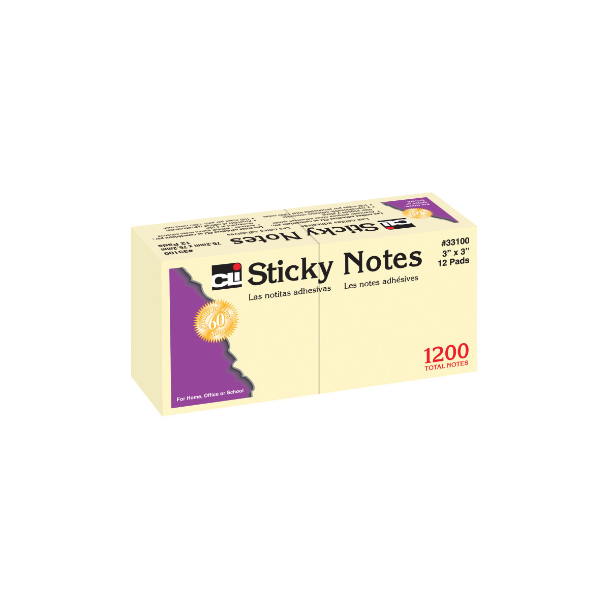 Self stick, removable and repositionable adhesive note pads. Advanced adhesive insures that notes stick securely and lay flat. Notes are ideal for all sorts of jobs, organizing and note taking. 100 sheets per pad. Each pack includes 12 pads.