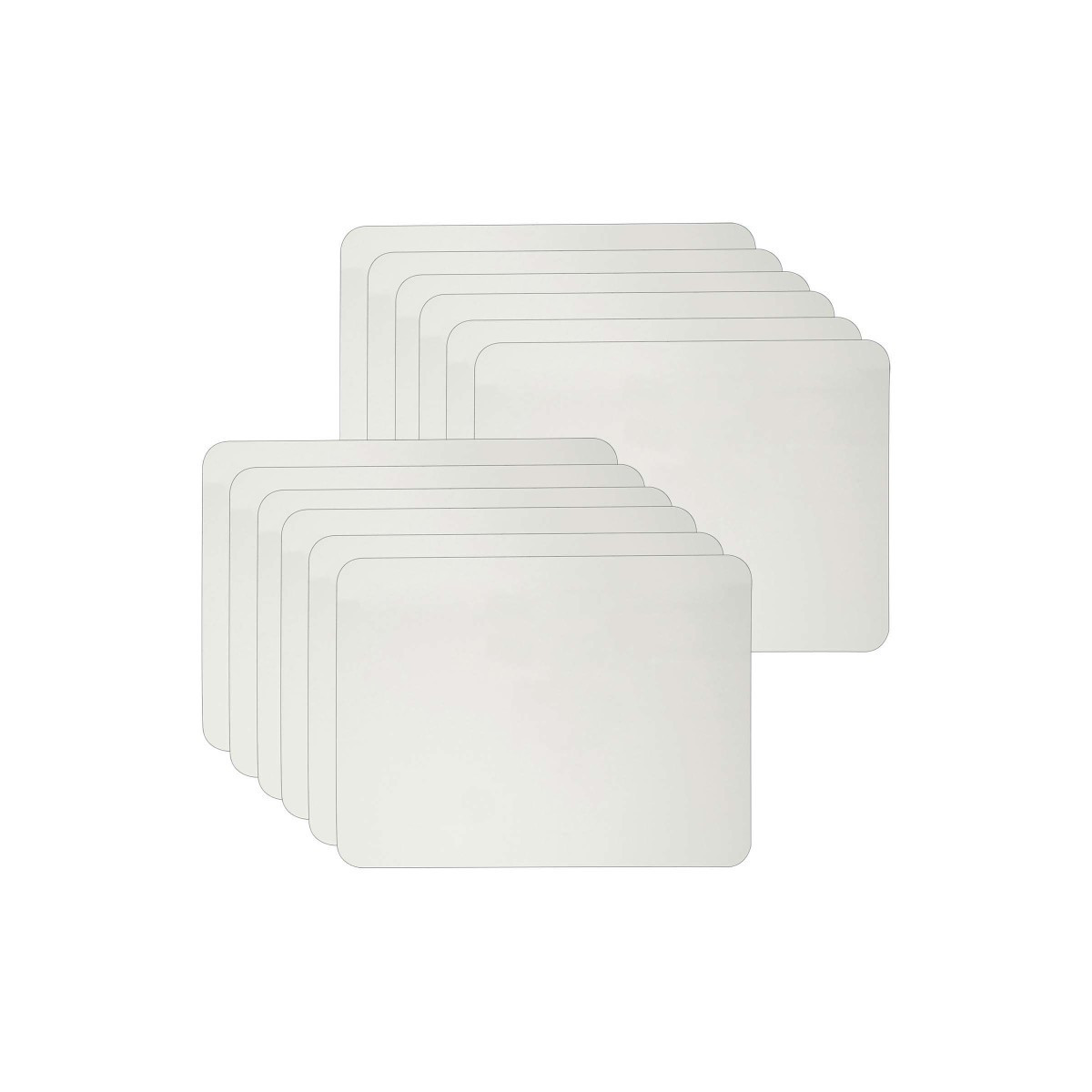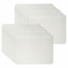 Great for classroom games, math lessons, reminders and all assignments. Durable masonite lap boards are 9" x 12" and can be used with all dry erase markers. An environment friendly way to learn, as you just write, wipe off and re-use with no waste. Plain on one side. Pack of 12 boards.