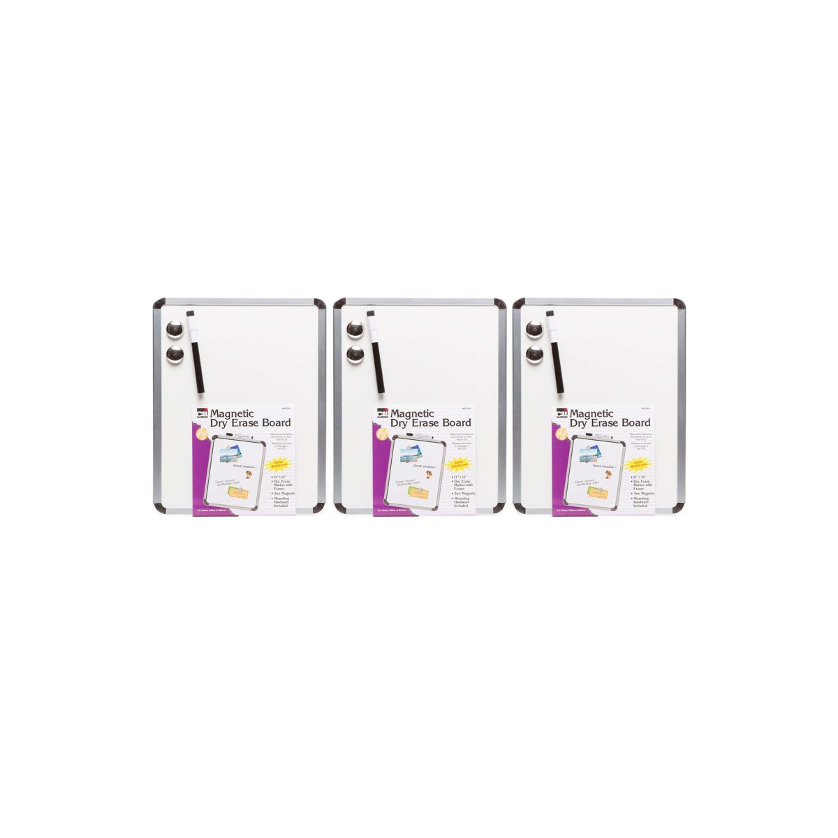 Magnetic dry erase board comes in a stylish and contemporary silver frame, which can easily match the decor in your home, dorm, classroom or office. Mounting hardware allows you to either secure the board permanently by using just the adhesive pads or use the magnetic strips for a transportable board. Comes with a dry-erase marker with eraser and two silver magnets which allows the dry erase board to also double as a bulletin board for all your notes, pictures or anything else you might need. Marker is non-toxic and conforms to ASTM D4236. Sold as a pack of 3.