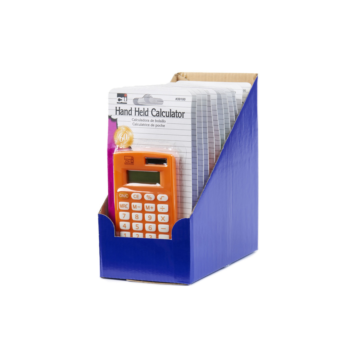 The hand held calculator features an 8 digit display, full memory functions and non-slip rubber keys. These sleek calculators have mercury free batteries and are dual powered. Comes in an assortment of colors. This set includes 12 brightly colored, 8-digit handheld calculators.