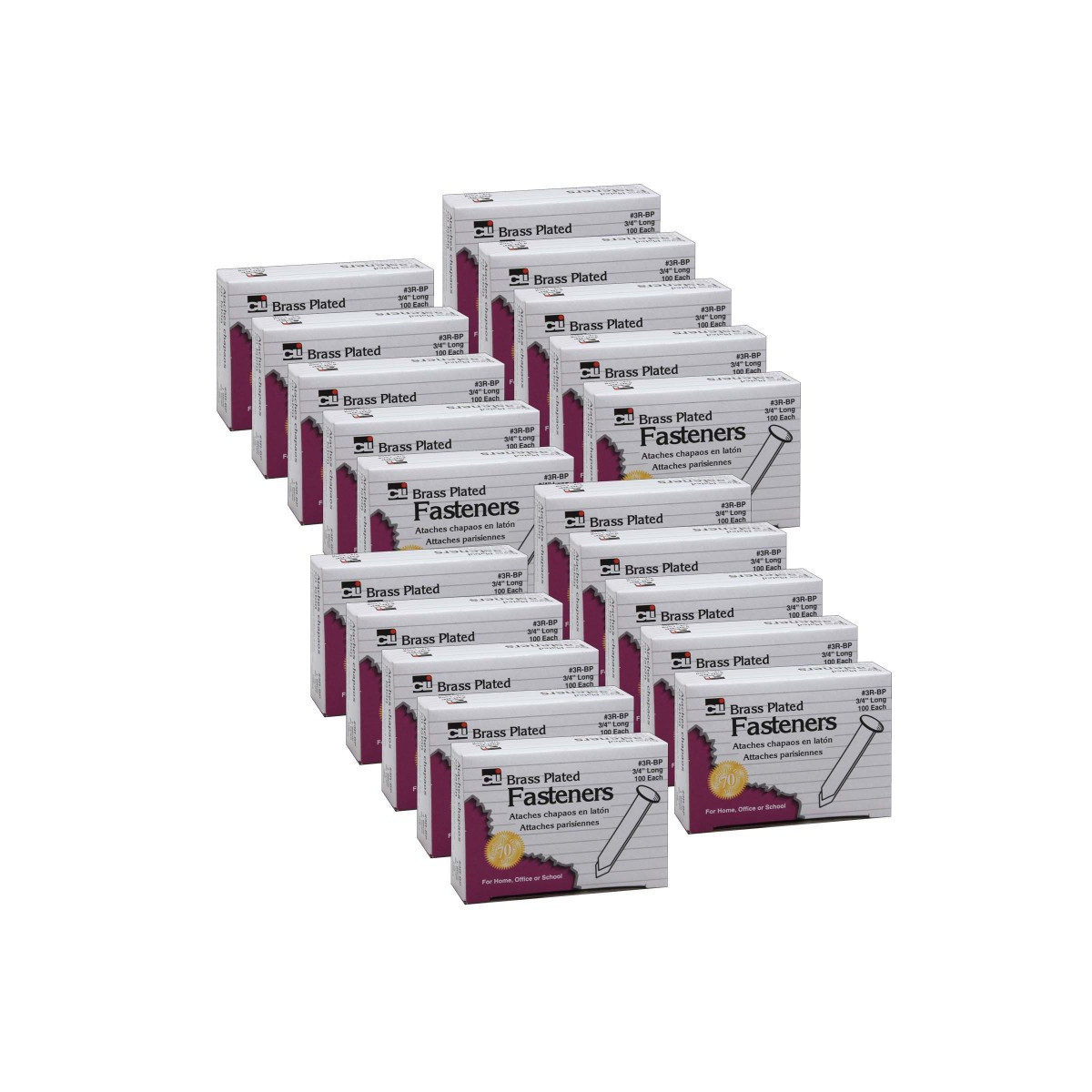 Bright, brass plated finish. Rigid shanks and sharp points for easy penetration. Wide heads prevent fasteners from pulling through punched holes. Each box includes 100 fasteners. Sold as 20 boxes for a total of 2000 fasteners.