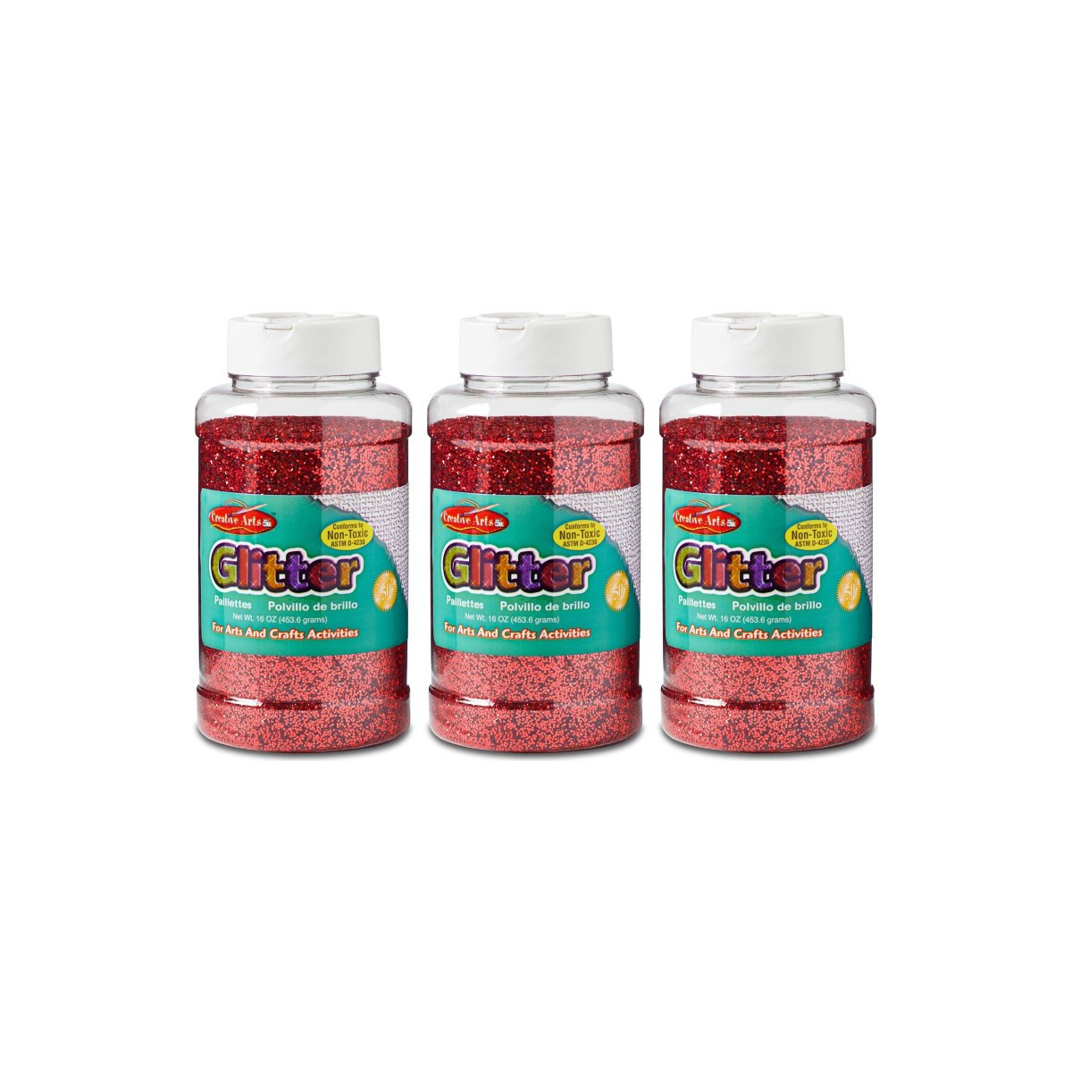 Charles Leonard Creative Arts™ Glitter, 1 lb. Bottle, Red, Pack of 3
