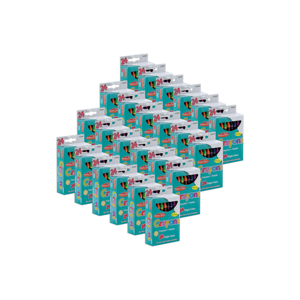 Crayons feature bright pigments and produce true colors to make any artwork look great. The brilliant colors lay down smoothly and blend easily without smudging or flaking. With a wide assortment of colors make any artwork a masterpiece. Crayon size 3-1/2" x 5/16". Non-toxic conforms to ASTM D-4236. Each box includes 24 crayons. Sold as 24 boxes for a total of 576 crayons.