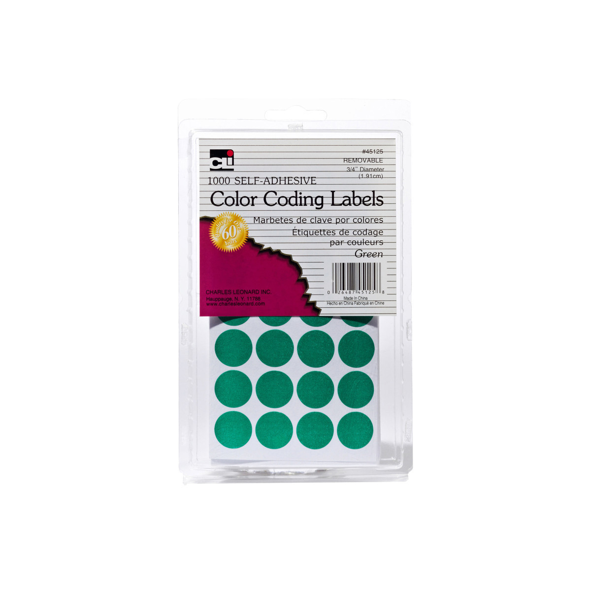Self-sticking removable labels. Ideal for organizing, scheduling, filing, price coding and more. Labels measure 3/4" diameter. Each pack includes 1000 labels.