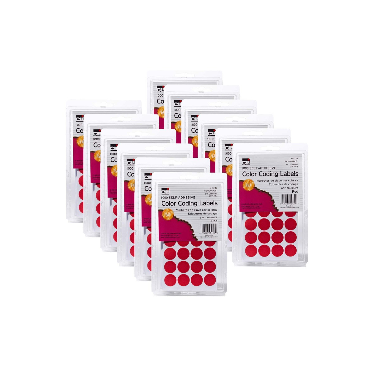 Charles Leonard Color Coding Labels, 3/4", Red, 1000 Per Pack, 12 Packs
