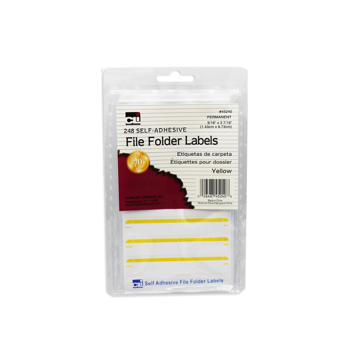 Self-sticking yellow labels feature permanent adhesive. Great for Color coding and organizing files. Labels measure 9/16" x 3-7/16". Each pack includes 248 self-adhesive labels.