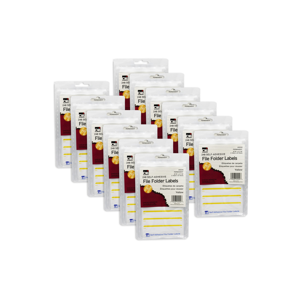Self-sticking yellow labels feature permanent adhesive. Great for Color coding and organizing files. Labels measure 9/16" x 3-7/16". Each pack includes 248 self-adhesive labels.