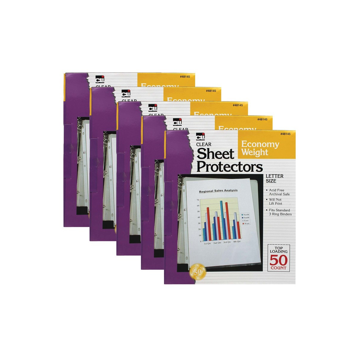 50 per box, sold as 5 boxes, 250 sheet protectors total