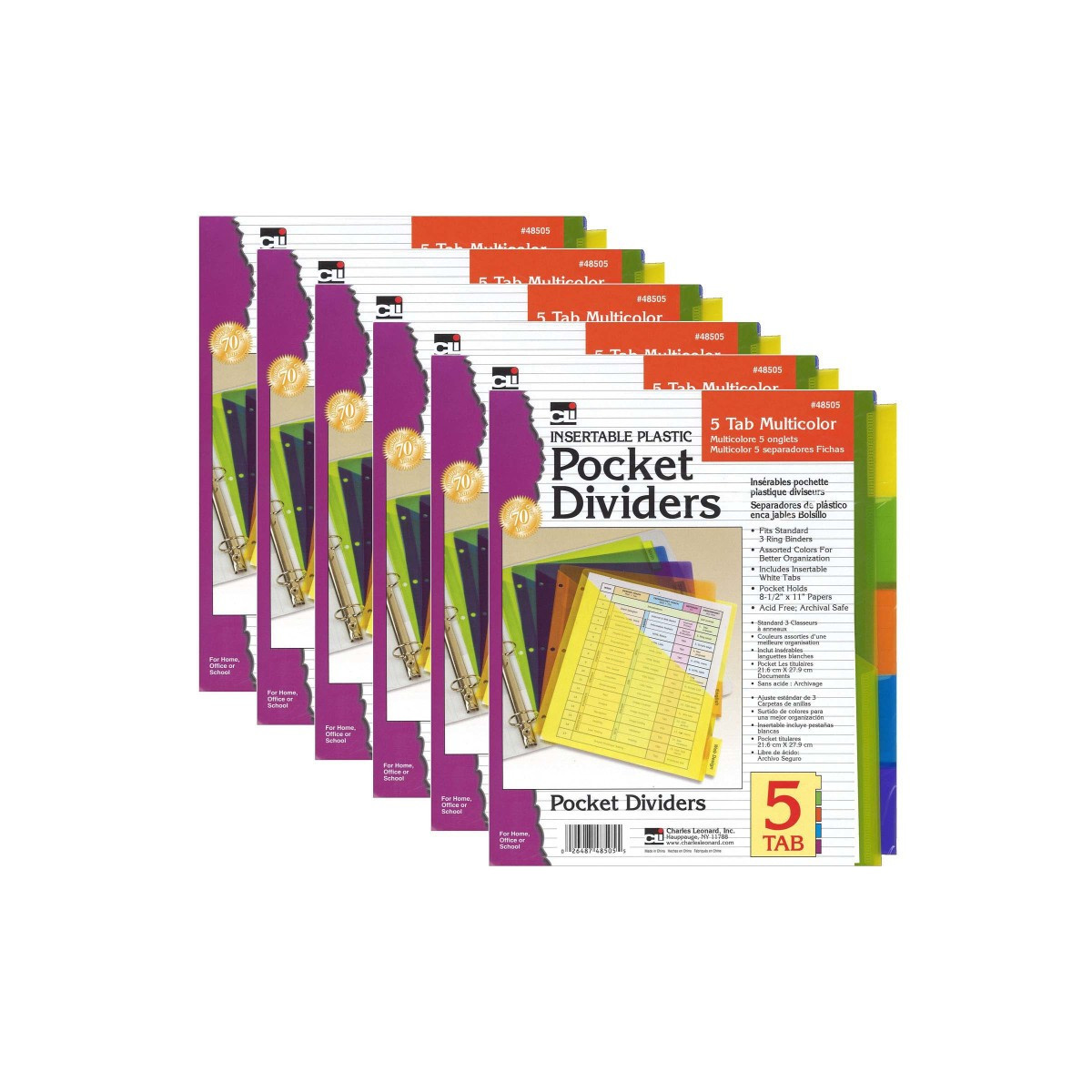 Fits most standard 3 ring binders, multi-color customizable tabs included. 5 tab positions and pockets for easy organizing. Sold as 6 packs for a total of 30 dividers.