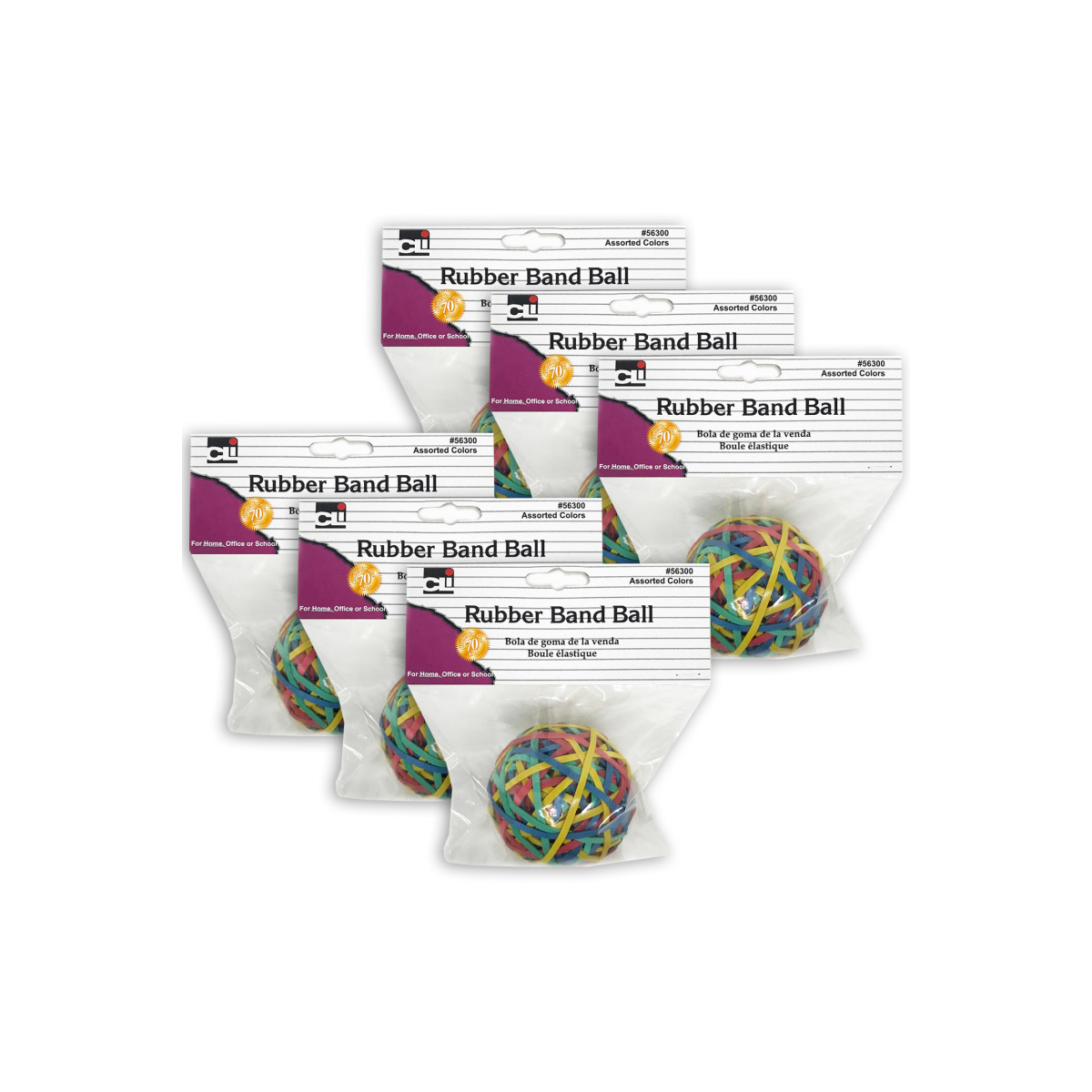 High quality bands made from 100% pure rubber. Seamless construction offers greater tensile strength, and durability. Assorted colors. Ball measures approximately 2.95" x 0.125". Sold as a pack of 6 rubber band balls.