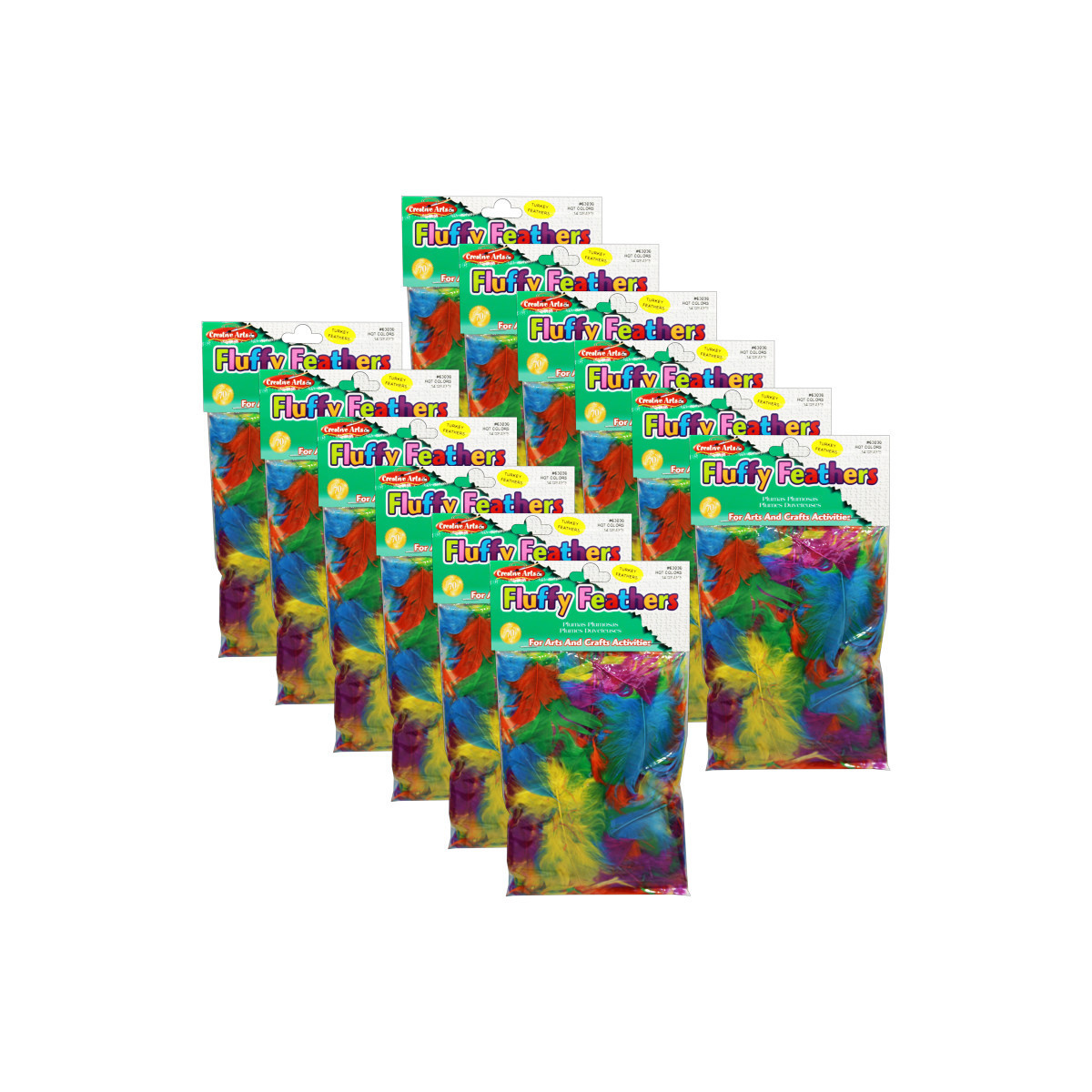 Natural turkey feathers featuring non-toxic colors bring life to masks, collages and all your arts and crafts projects. Each exciting color assortments includes 14 grams (1/2 oz.) per bag. Sold as 12 bags of feathers.