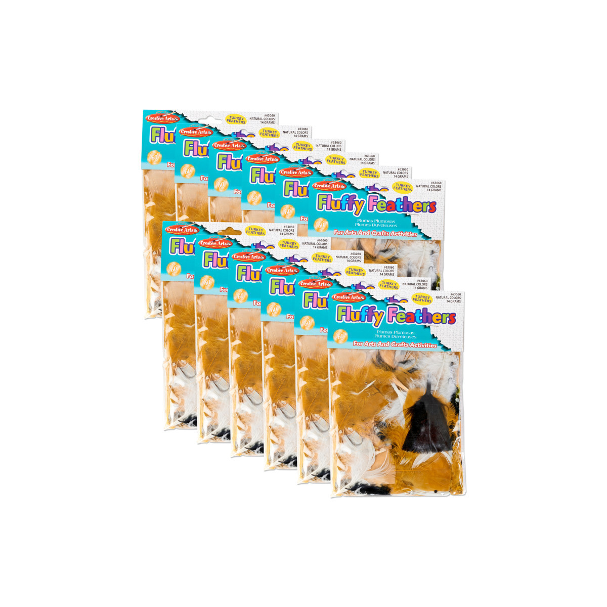 Natural turkey feathers featuring non-toxic colors bring life to masks, collages and all your arts and crafts projects. Each pack includes 14 grams (1/2 oz.) of feathers. Sold as 12 packs for a total of 6 oz. of feathers.