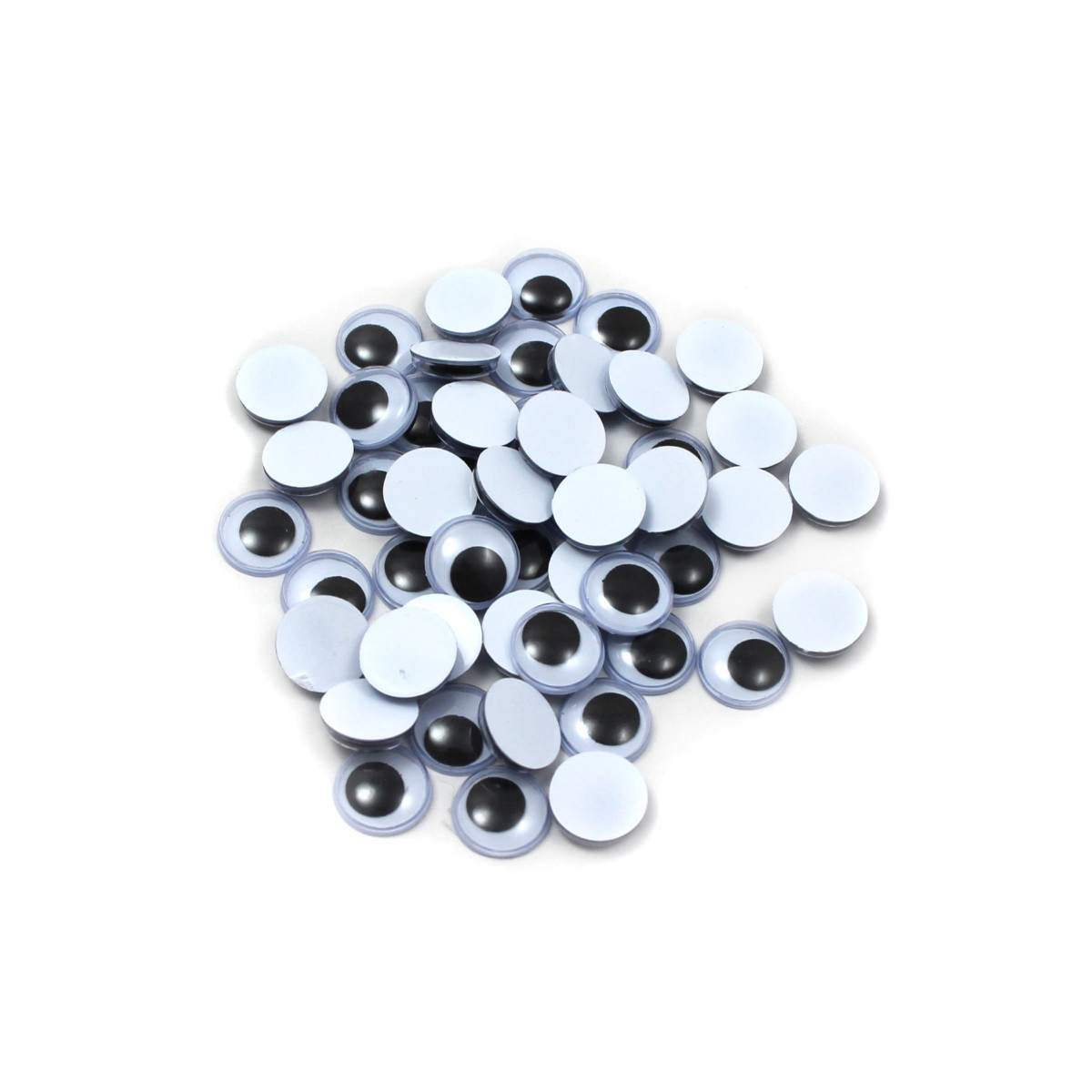 Give your projects "eye" catching appeal. Wiggle eyes bring life to dolls, animals, toys and more! Features a flat back for gluing. Great for any arts and craft project. Each pack includes 50 wiggle eyes.
