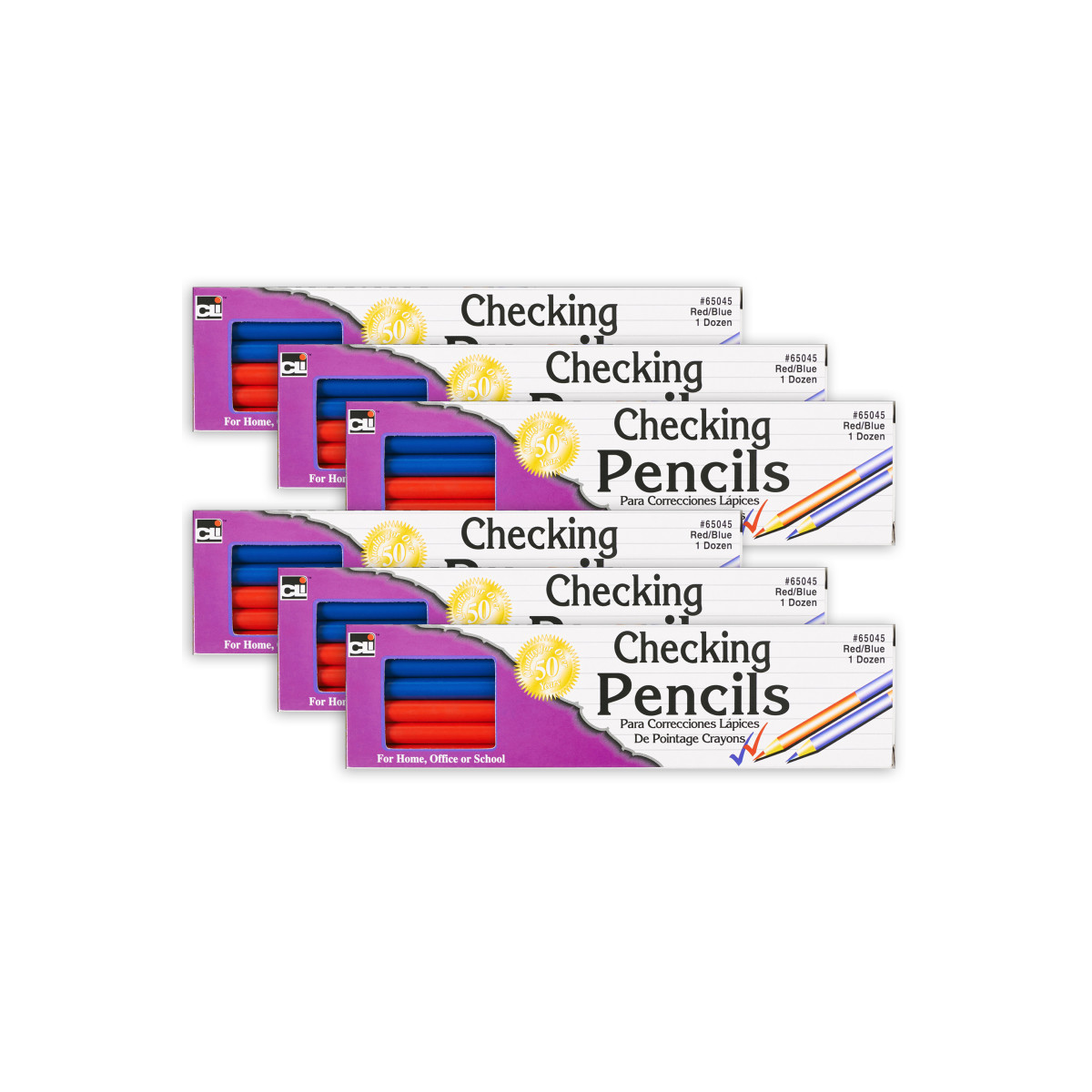 Strong, thin colorful leads for checking and grading. Combination pencils feature a round barrel. AP Certified, and conform to ASTM-D4236. Each box includes 12 pencils. Sold as 6 boxes for a total of 72 pencils.