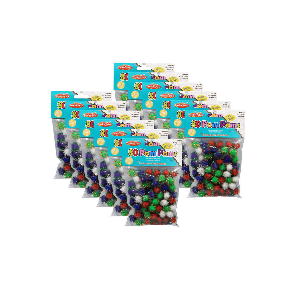 Furry balls of fluff add life to your craft creations. Soft and Crush resistant Pom Poms are great for making dolls, ornaments or wherever your creativity takes you. Each pack includes 80 pom poms. Sold as 12 packs for a total of 960 pom poms.