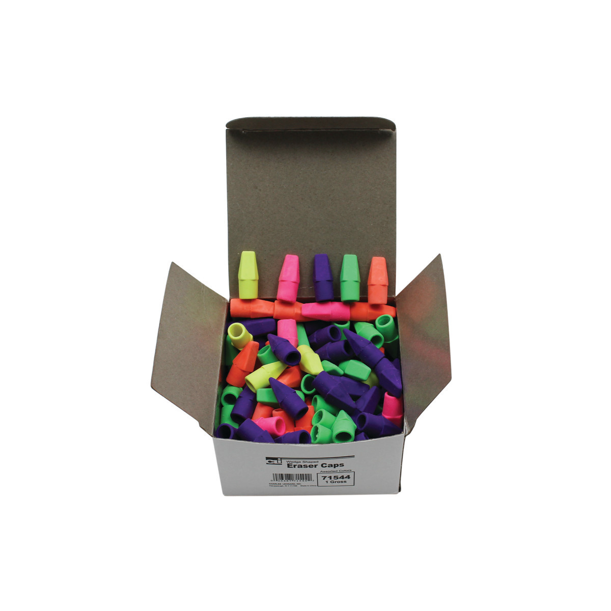 Charles Leonard wedge-shaped eraser caps replace worn out erasers. Fit all standard-size pencils. Each box includes 144 eraser caps in assorted colors.