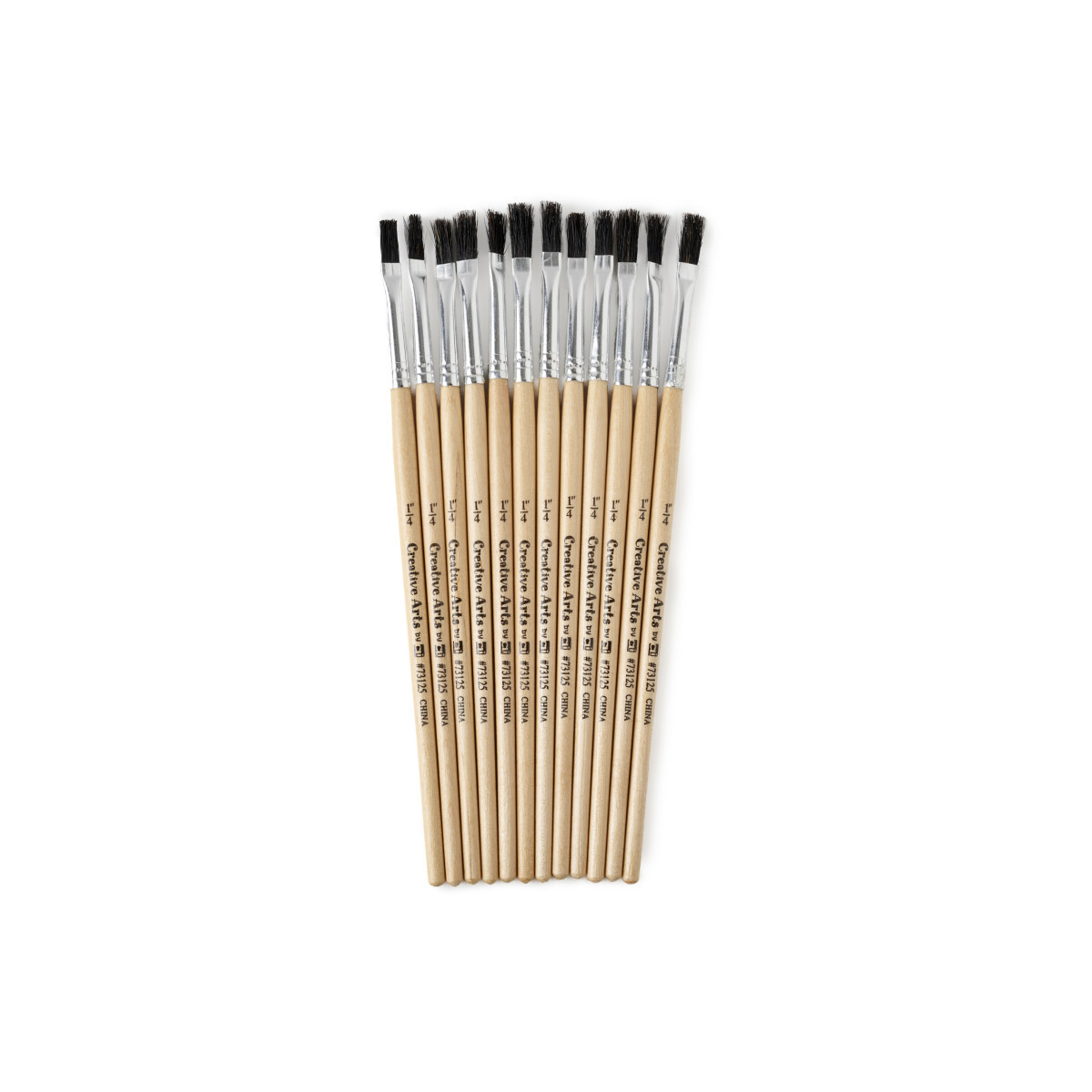 Fine grade natural black bristles. Seamless polished aluminum ferrules are double crimped to handles. Natural hardwood handles feature lacquered finish. Short handled easel brushes are ideal for budding artists. Each set includes 12 brushes.