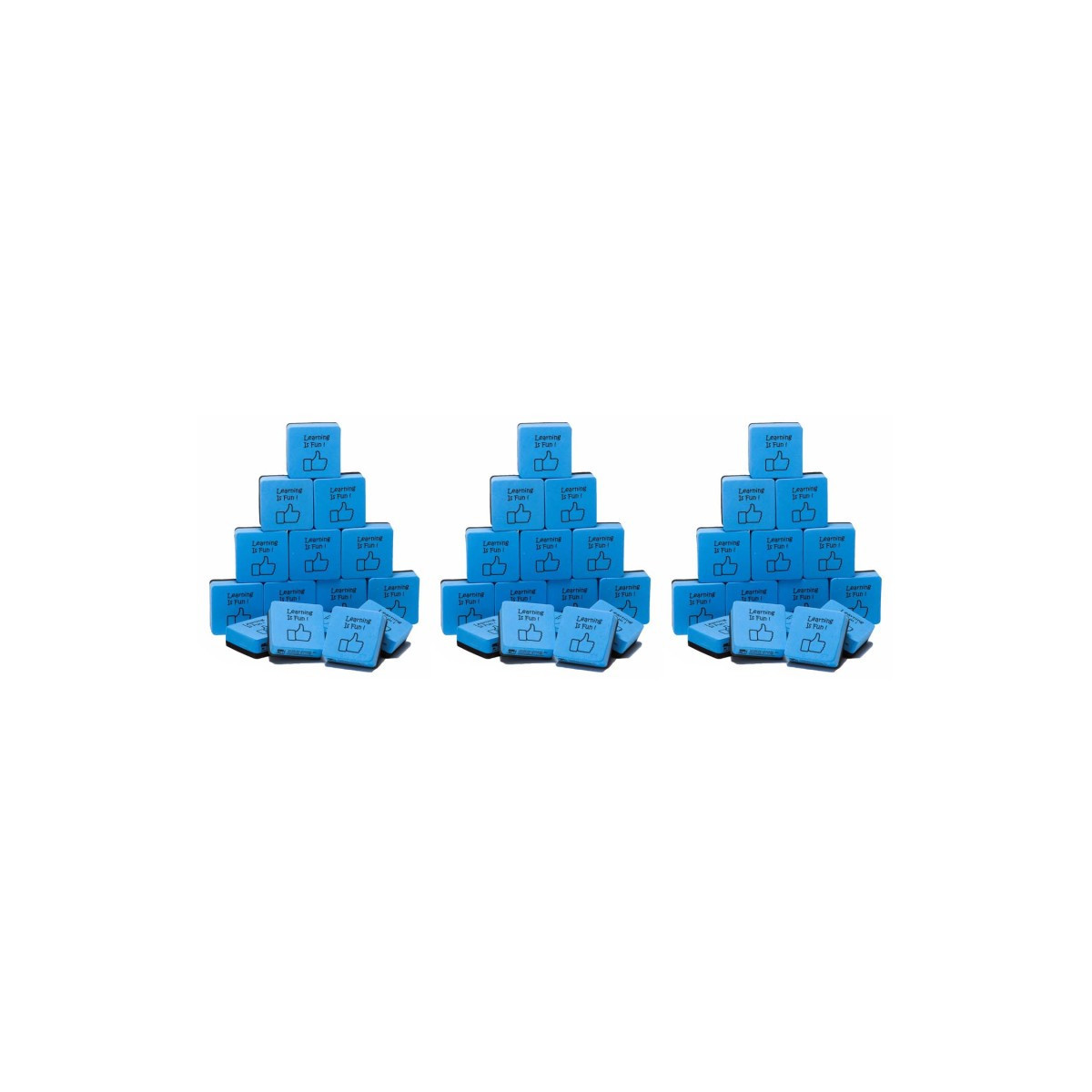 Multi-purpose eraser removes markings quickly and cleanly. Ideal for use on all dry erase surfaces and for standard chalkboards. Cleans with soap and water for long life. Measures 2" x 2" x 0.75". Each pack includes 15 erasers. Sold as 3 packs for a total of 45 erasers.