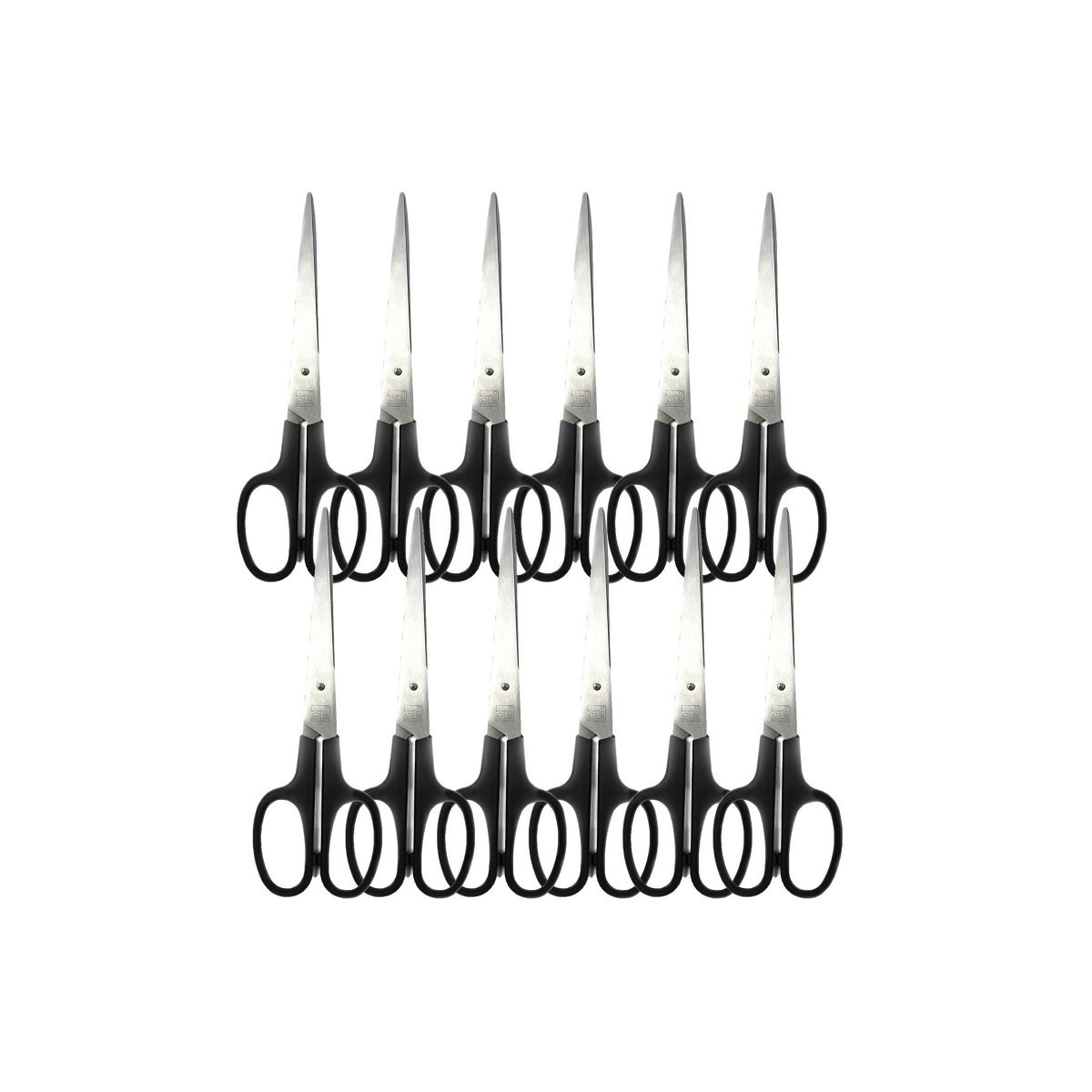 High quality, stainless steel shears. Precision ground blades for consistently clean cutting. Comfortable molded plastic handles. Pack of 12 shears.