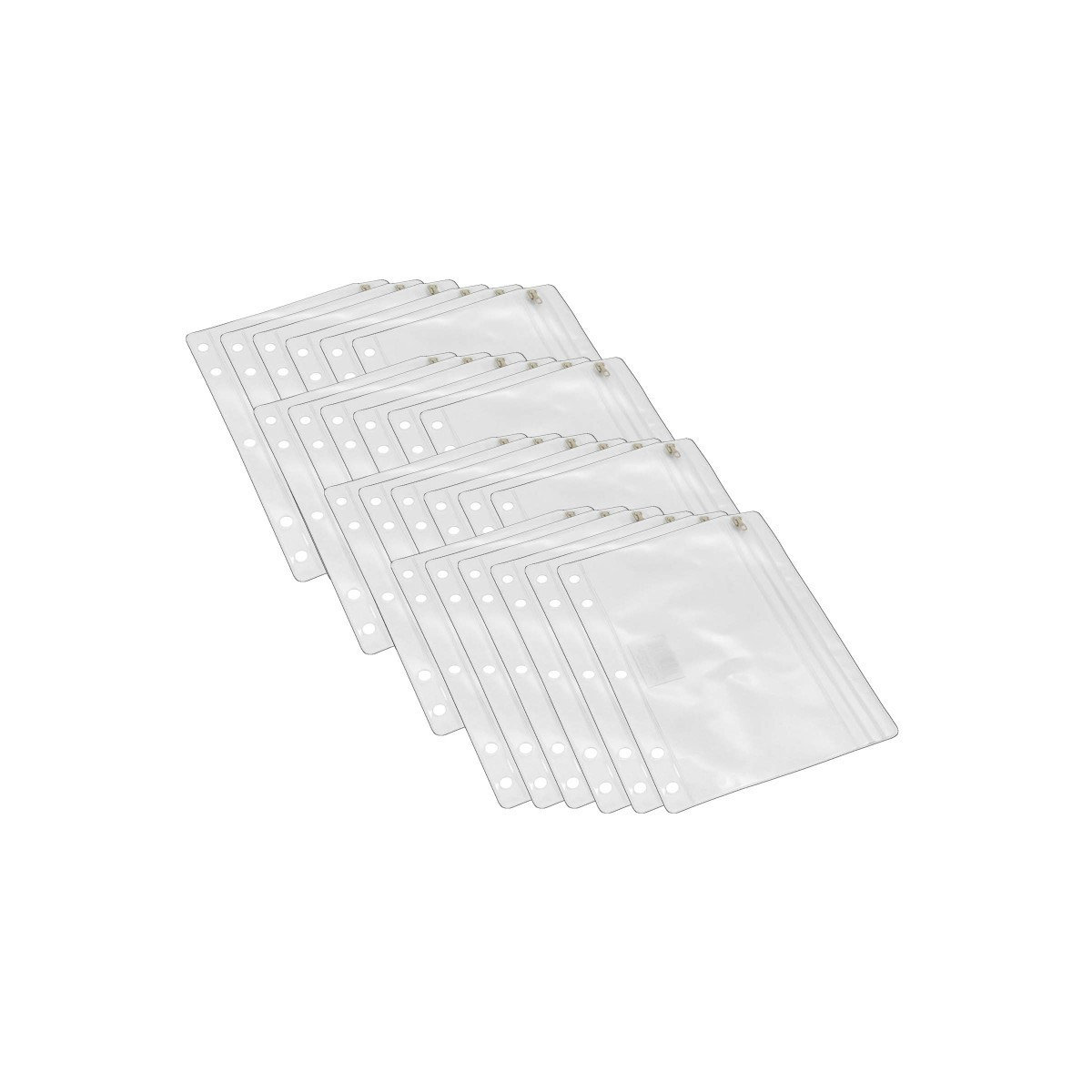 Clear Vinyl Binder Pouch fits 3 or 5 ring binders. Ziploc style closure keeps contents securely inside. Clear plastic construction allows easy viewing of contents. Measures 10" x 7". Pack of 24 pencil pouches.