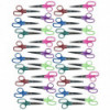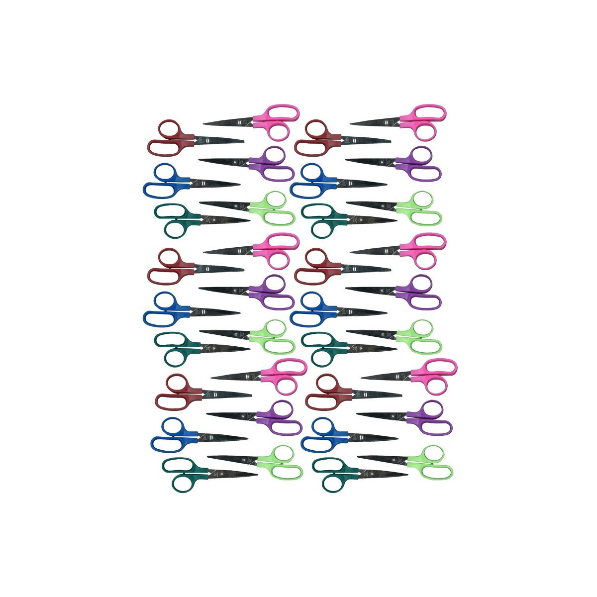 Easy to hold scissors for small hands. Handles have one oblong side to allow better control. Universal design is ideal for both right and left handed use. Stainless steel blades with molded plastic handles. Pointed tip. Sold as a pack of 36 in assorted colors (no color choice).