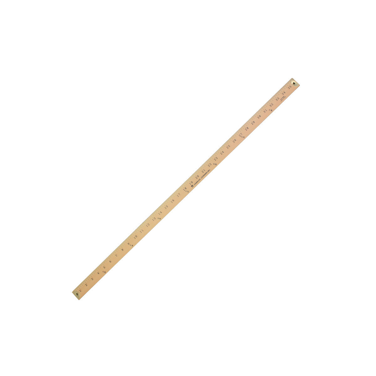 Made of selected wood, these rulers are lacquered with a multiple coat for a natural finish. Rulers are scaled with inches on both sides, one side also shows 1/8's of a yard. Ruler also is designed with a hole for hanging. Metal Edging.