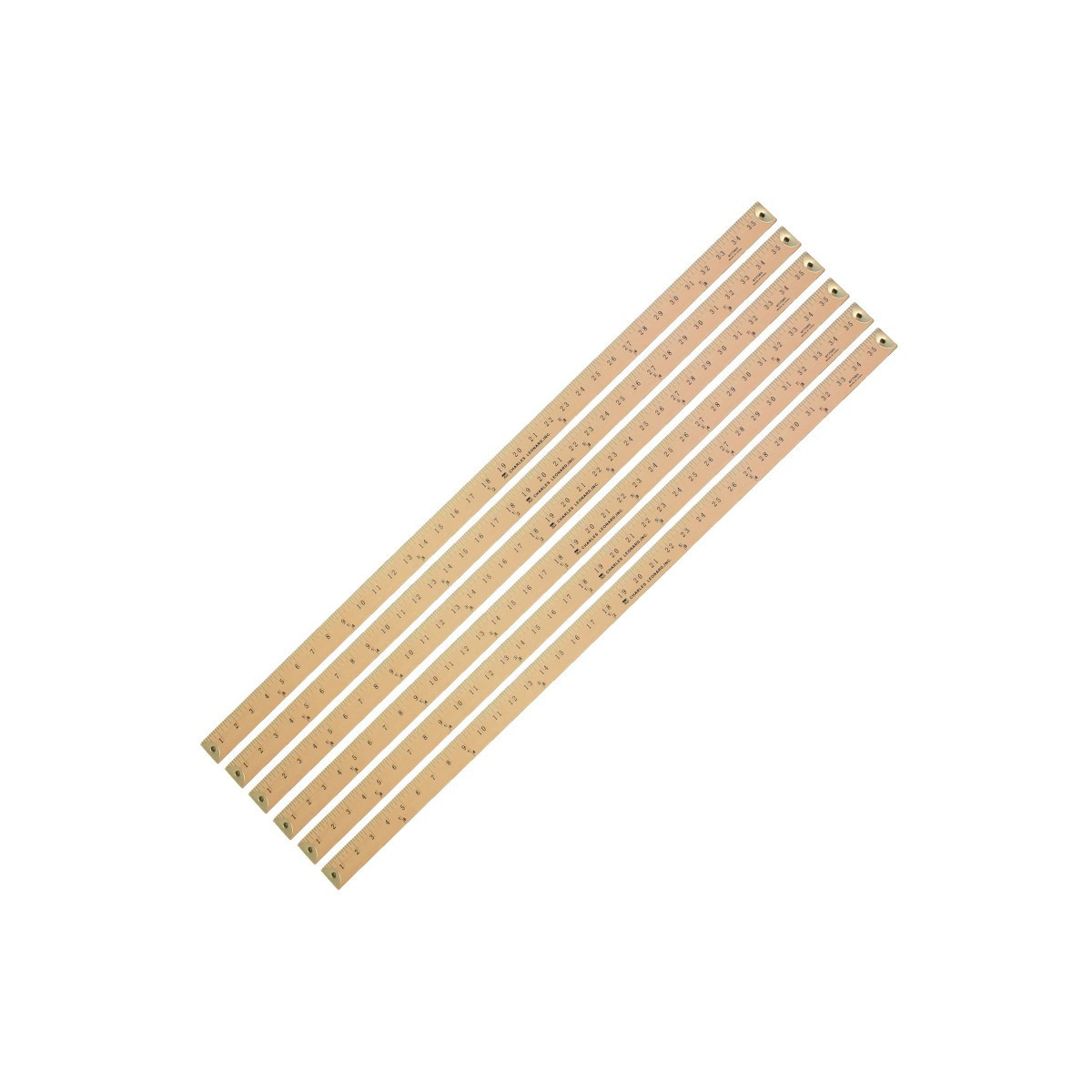 Made of selected wood, these rulers are lacquered with a multiple coat for a natural finish. Rulers are scaled with inches on both sides, one side also shows 1/8's of a yard. Ruler also is designed with a hole for hanging. Metal Edging. Sold as a pack of 6 yardsticks.