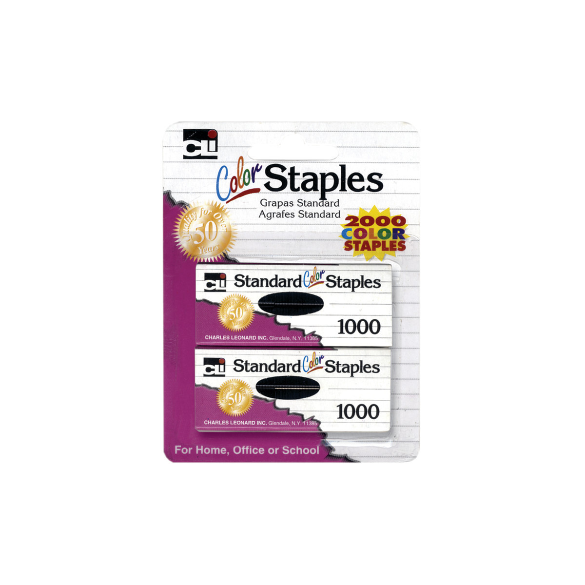 Standard-size staples come in brilliant colors to enhance your stapled documents. Each staple is chisel pointed for easier penetration. Standard staple size. Great for home, office or school. Fit all standard size staplers. Staples come in purple, teal and pink. No color choice. Each pack includes 2000 staples.