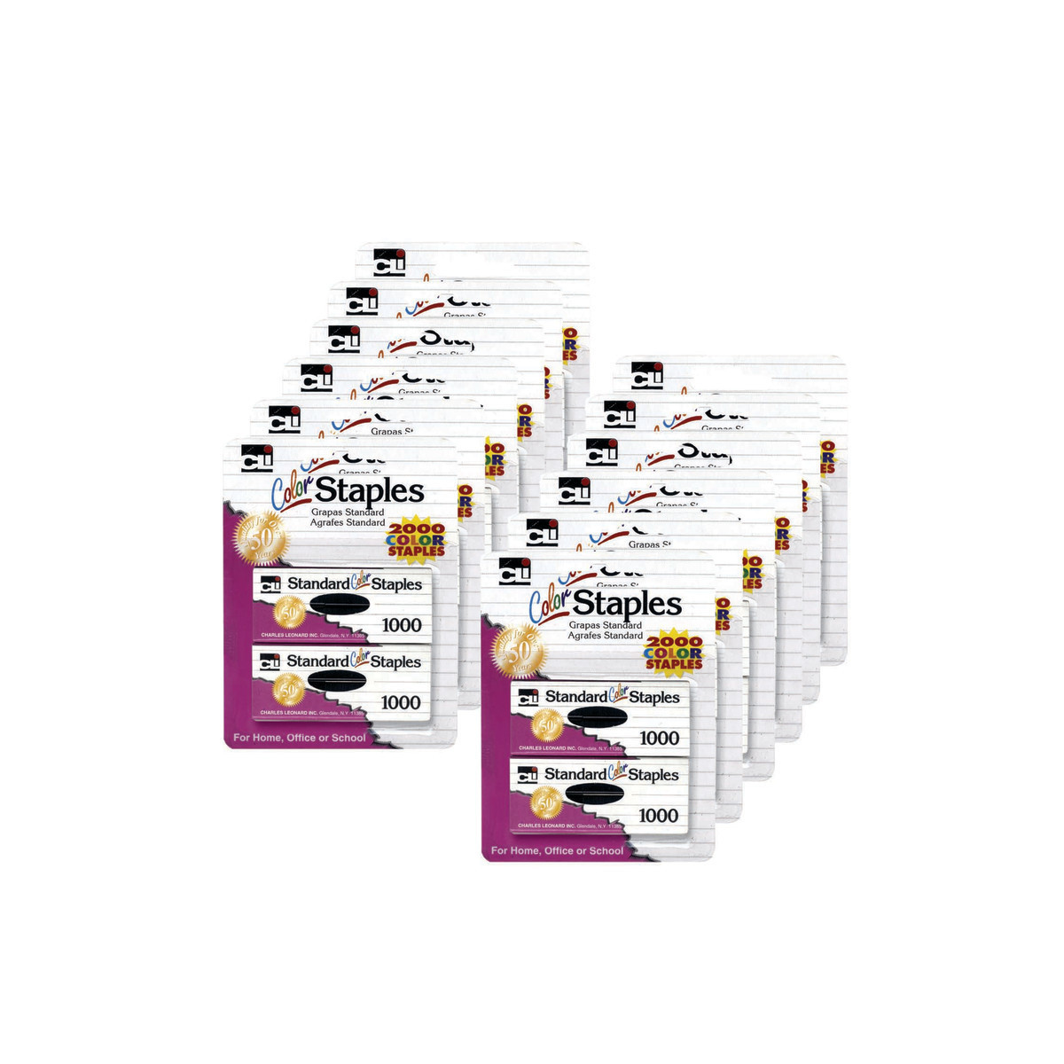 Standard-size staples come in brilliant colors to enhance your stapled documents. Each staple is chisel pointed for easier penetration. Standard staple size. Great for home, office or school. Fit all standard size staplers. Staples come in purple, teal and pink. No color choice. Each pack includes 2000 staples. Sold as 12 packs for a total of 24000 staples.