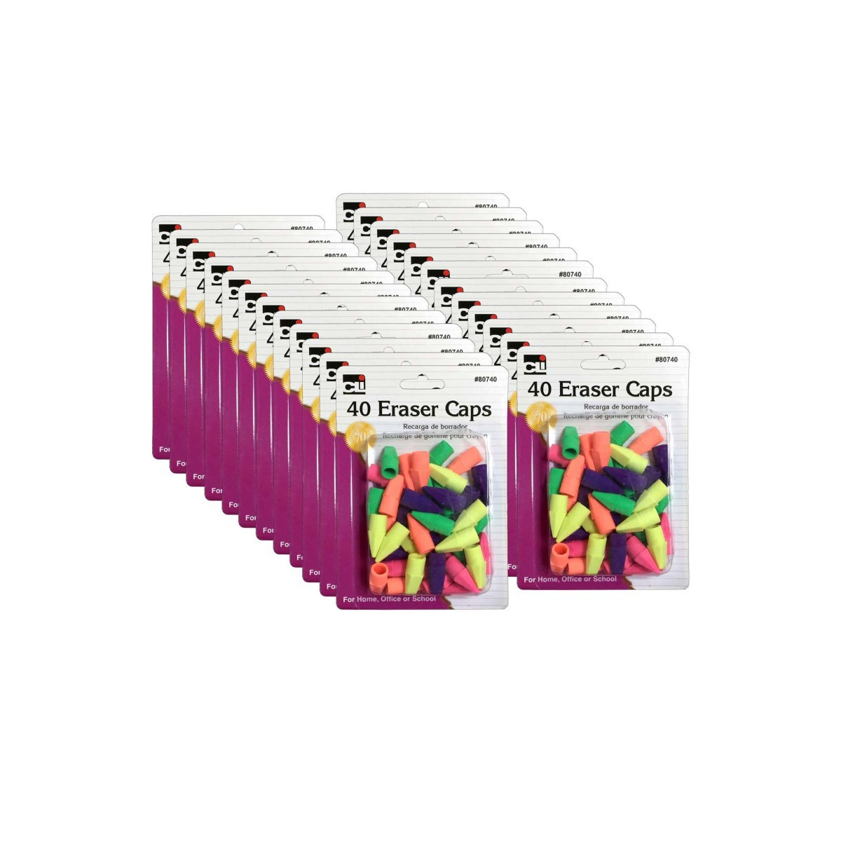 For home, office, or school, these caps have a wedge shaped design. Easy and economical way to replace worn out pencil erasers. Each pack includes 40 erasers in assorted colors. Sold as 24 packs for a total of 960 erasers.