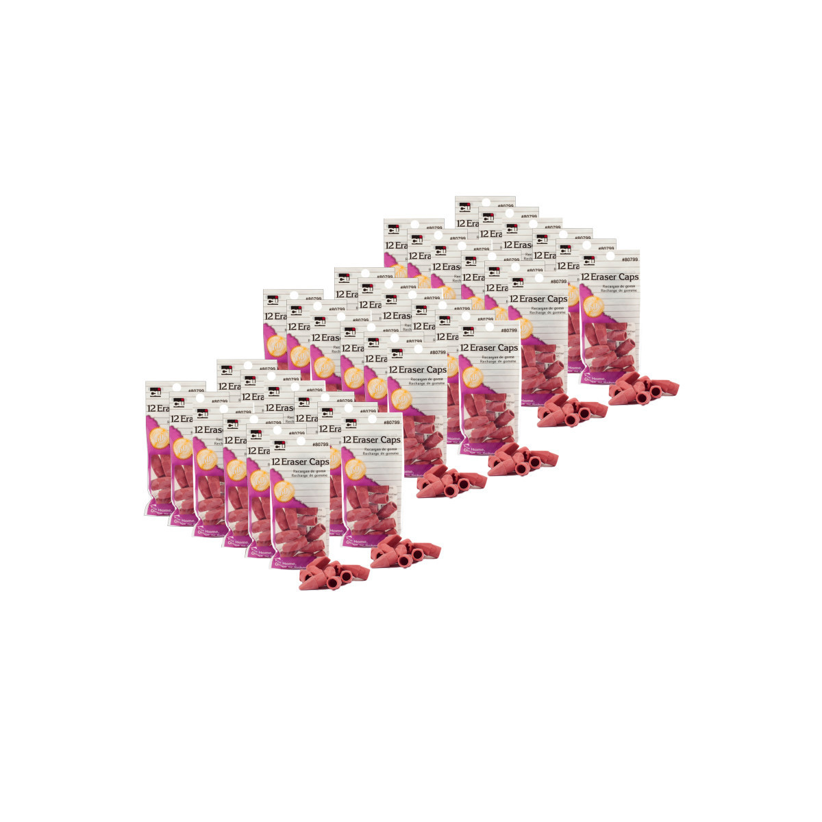 For home, office, or school, these caps have a wedge shaped design. Easy and economical way to replace worn out pencil erasers. Each pack includes 12 erasers. Sold as 36 packs for a total of 432 eraser caps.
