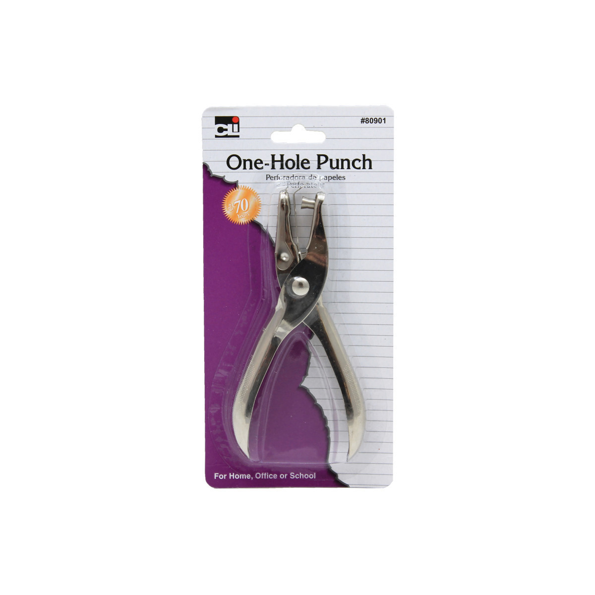 Charles Leonard One-Hole Punch offers convenient hand-held use with hinged chip catcher. Great for home, office or school use. Punches 1/4" diameter holes.